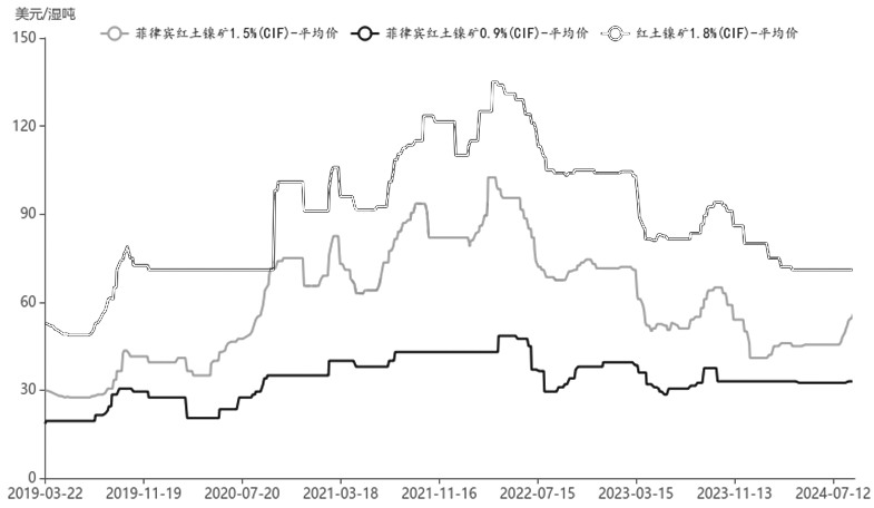 图为美国PCE及薪资增速走势 8月中下旬,是美国经济“软着陆”交易逻辑主导阶段。8月14日公布的美国7月CPI环比增长0.2%,核心CPI同比增长3.2%,均符合市场预期,缓解了市场前期对需求的悲观情绪。8月15日公布的美国零售销售数据环比增长1%,超出市场预期,同日公布的前一周首次申请失业金人数降至7月以来的最低水平,进一步增强了市场对美国需求的信心,美国经济衰退逻辑被证伪,商品市场情绪得到进一步修复,有色板块企稳反弹,沪镍重新站上130000元/吨一线。8月23日晚在美国举行的杰克逊霍尔全球央行年会上,美联储主席鲍威尔讲话隐含了“经济已正常化”“货币政策有待正常化”的信号,9月降息几乎已无悬念。8月29日公布的美国二季度实际GDP年率修正至3%,超出市场预期。8月30日公布的美国7月核心PCE物价指数录得同比上升2.6%,略低于市场预期,美国个人收入和实际支出略好于预期,在经济数据稳定的背景下,市场对9月降息25个基点的概率有所提升。 后市来看,在9月美联储降息落地之前,市场对即将开启降息周期的交易仍将延续。近两周的海外宏观数据较为重要,若经济数据持续表现稳定,预计在9月美联储议息会议前内外盘镍市场风险偏好较为稳定,后续宏观方面的担心依然在于目前商品市场盘面已经计价年内100个基点的降息幅度,9月降息落地后市场会进一步对后续降息路径进行博弈,若美联储给出更为平缓的降息曲线,可能对市场情绪造成冲击。此外,降息落地后,9—11月市场对经济数据或更为敏感,若美国非农就业数据有进一步走弱迹象,可能加大市场对美国经济前景的担忧。整体来看,宏观情绪有所回暖,但不足以形成趋势性变化,有色板块各品种表现较为分化,镍由于自身基本面支撑较弱,暂时看不到明显反弹空间。 基本面维持弱势,产业成本边际上升 镍矿方面,维持短期偏紧、预期宽松格局。据Mysteel统计,2024年印尼镍产量约在223.53万吨,对应的镍矿需求量大约在2.44亿吨。根据印尼镍矿协会公布的最新消息,截至目前已经通过的开采额度为2.21亿吨,全年供应整体相对宽松。但受前期印尼企业镍矿库存偏低及雨季的双重影响,8月以来印尼镍矿依旧处于流通短缺状态,印尼市场镍矿现货溢价明显,内贸持续处于升水状态,甚至转向菲律宾进口镍矿,造成菲律宾镍矿价格持续上涨,创下年内新高。截至8月30日,1.8%品位红土镍矿(CIF)平均价为71美元/吨,1.5%品位菲律宾红土镍矿(CIF)平均价为56美元/吨,0.9%品位菲律宾红土镍矿(CIF)平均价为33美元/吨。后续来看,菲律宾四季度将进入传统雨季,下游备库需求仍在,在印尼RKAB持续未有最新进展的情况下,短期镍矿端价格仍有支撑,给予产业链边际成本支撑。 纯镍方面,供需格局维持弱势。LME镍库存处于近三年高位,且延续累积趋势,在不锈钢和新能源需求持续弱势的背景下,暂时看不到明显的去库迹象。据SMM数据,部分终端镍板库存已备货至9月底,整体仍旧处于过剩阶段。从产业链的角度来看,7月以来沪镍跟随有色板块冲高回落,价格长时间在130000元/吨一线,已跌破产业链成本价,甚至形成了产业链的供应出清。2024年二季度,14家海外主要镍生产商产量为22.3万吨,预计2024年全年镍金属产量为74万吨,同比减少5.2%,约4.5万吨,主要受部分企业停产影响。其中,嘉能可Koniambo项目已在2024年2月过渡到护理和维护阶段;2024年5月底IGO将西澳大利亚Cosmos镍矿转入维护阶段;2024年6月法国矿业公司Eramet与德国BASF宣布取消对印尼WedaBay镍钴湿法项目的联合投资;2024年7月必和必拓宣布Nickel West业务和West Musgrave项目将于2024年10月起暂停。因此,在产业链出现实质性负反馈前,进一步向矿端索取利润的驱动不强。
