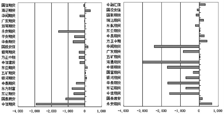 昨日,燃料油期货2411合约呈现缩量减仓、震荡小幅下跌的走势。盘中期价最高反弹至2918元/吨,最低下探至2888元/吨,收盘时小幅收低0.55%至2908元/吨。燃料油2411合约大幅减仓16120手,至216019手,降幅为6.94%。 交易所公布的多空持仓排行榜前20席位数据显示,燃料油期货2411合约持仓呈现多空双减的现象。其中,多单合计减仓9540手,至115181手;空单合计减仓11186手,至141417手。由于空头合计减仓数量超过多头合计减仓数量,导致净空头寸小幅萎缩至26236手。 具体来看,多头前20席位中,减持多单的席位有14家。其中,减持数量超过1000手的有3家,分别为中信期货席位、国泰君安期货席位和永安期货席位,分别大幅减少2912手、1154手和1586手。另外,减持数量介于100手至1000手的有9家,分别为东证期货席位、东方财富期货席位、中泰期货席位、中信建投期货席位、方正中期席位、徽商期货席位、华泰期货席位、平安期货席位和华闻期货席位,分别减少663手、774手、519手、301手、349手、352手、720手、634手和292手。其余2家席位减持数量不足100手。 空头前20席位中,减持空单的席位有12家。其中,减持数量超过1000手的有5家,分别为中信期货席位、华泰期货席位、中银期货席位、海通期货席位和华闻期货席位,分别大幅减少1574手、1665手、1690手、2990手和2372手。另外,减持数量介于100手至1000手的有7家,分别为东证期货席位、银河期货席位、国富期货席位、广发期货席位、东航期货席位、国联期货席位和国投安信期货席位,分别减少710手、700手、328手、844手、195手、168手和118手。