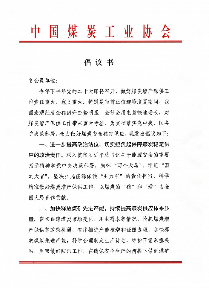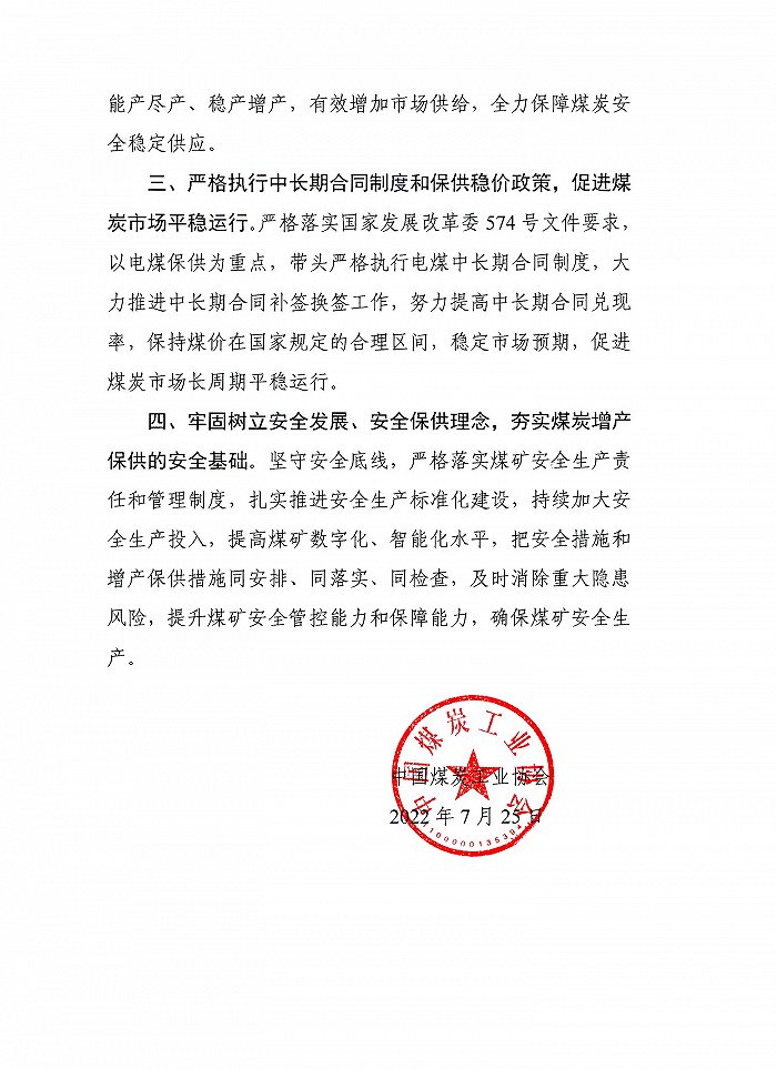 中煤协发布倡议书:严格执行中长期合同制度和保供稳价政策 促进煤炭