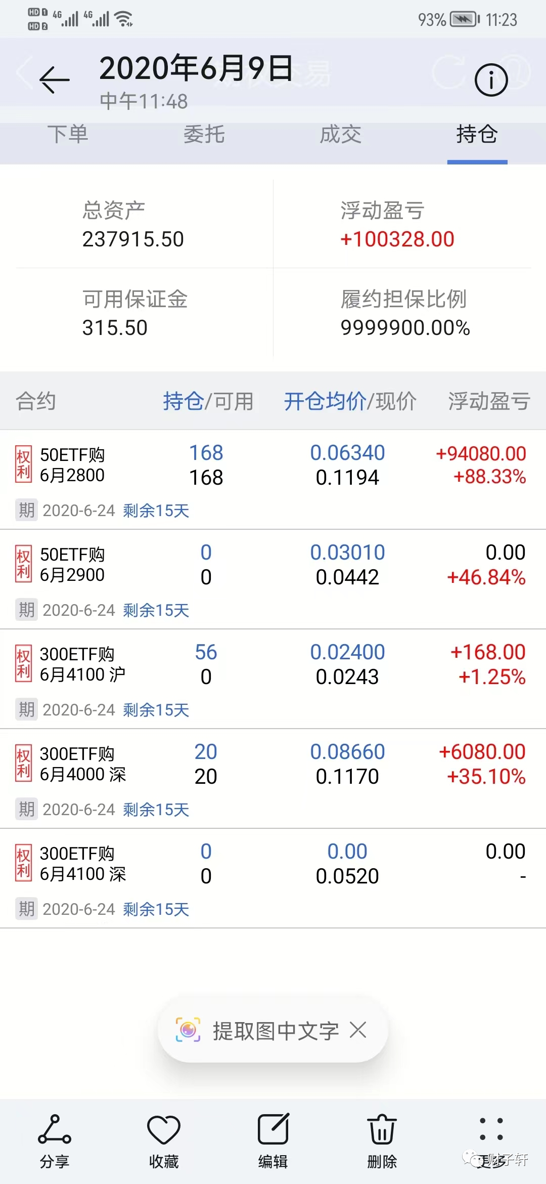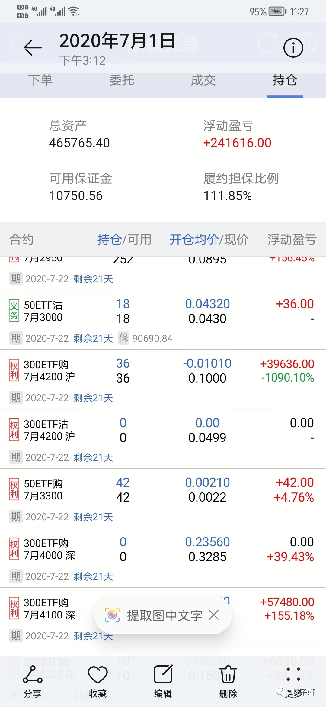而后这波还在冲,到7月7日开盘就突破了500W,我没有时间再来手机截屏了,我抓紧时间快速的减仓!最后收获300多W! 此战基本上就这样结束了!今天就先只写这么多,找这些图片费时,大家对比看看,行情的变化与那段时间的帐户的变化!这个谈不上有什么技术,运气好是一个大的方面。而目前的行情情况还是不同的,目前更像6月前面部分。相关的操作移仓及中间的移仓变化,可适当学习,这是一种适合极端上涨行情的操作手法,但绝对不能过份运用!采用方式必然要有大的盈利并取出了成本! 明天如果有时间会再写第二部分即这两天外围变化的想法! 今天听到一句话:自己知道自己对市场不能做出准确的判断的人往往能够对市场做出准确的判断,认为自己能准确的判断市场的人必死无疑! 敬畏市场及认识自己的弱小并保持弱者心态非常重要! (责任编辑:admin) |