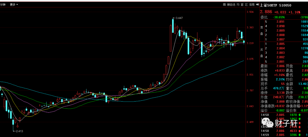 50ETF当天走势!涨了近9%