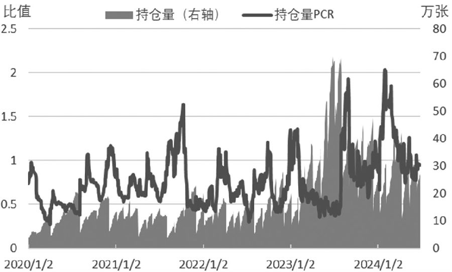 套保需求持续增加 甲醇期权自2019年12月16日在郑州商品交易所上市以来,认购期权和认沽期权交易量同步上行,其中认购期权交易量贡献度更高,认沽期权与认购期权成交量比值(成交量PCR)约有83%的时间小于1,认沽期权与认购期权持仓量比值(持仓量PCR)约有81%的时间小于1。