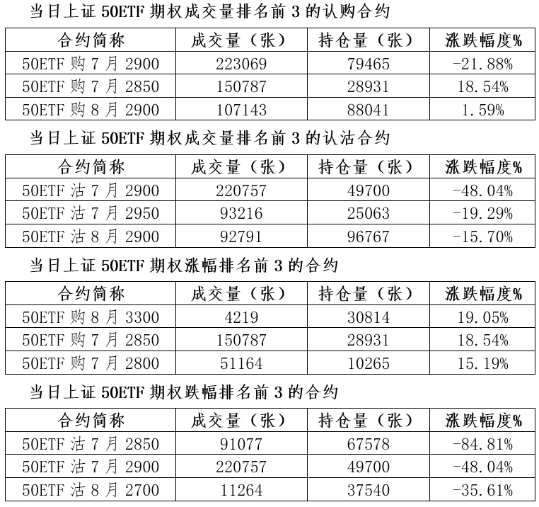 7月26日上证50ETF现货报收于2.891元,上涨0.45%,上证50ETF期权总成交面额570.449亿元,期现成交比为0.29,权利金成交金额8.178亿元;合约总成交1962134张,较上一交易日减少3.52%,总持仓2789206张,较上一交易日减少0.41%。认沽认购比为0.92(上一交易日认沽认购比0.95)。