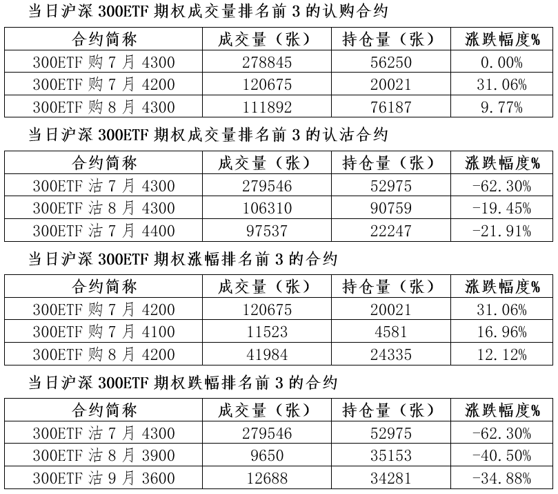 沪深300ETF现货报收于4.3元,上涨0.68%,沪深300ETF期权总成交面额816.930亿元,期现成交比为0.41,权利金成交金额11.311亿元;合约总成交1902830张,较上一交易日减少1.53%,总持仓2037798张,较上一交易日减少0.61%。认沽认购比为1.05(上一交易日认沽认购比1.23)。