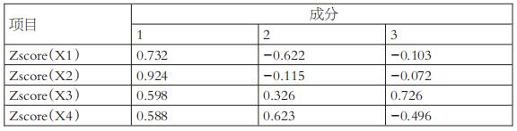 表4为KMO和Bartlett球形度检验 由表4可以看出,KMO值大于0.5,同时Bartlett球形度检验显著性为0,这表明数据呈现出球形分布,符合标准,各个变量在一定程度上相互独立。从表5可知,前3个成分的累计贡献率为94.4%,满足累计贡献率大于85%的原则,故本文选择提取3个主成分进行分析。
