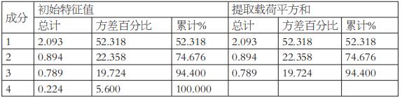 表3为方差分解 美联储调息的利率变动直接对大宗商品价格产生影响之外,市场情绪对美联储调息的反应也会对大宗商品价格走势产生影响。为进一步研究美联储调息对市场情绪及大宗商品价格的影响,本文通过主成分分析法构造美联储调息周期内市场情绪价值指数,以持仓量、成交量、基差以及每日仓单存量作为构建市场情绪价值指数的因子。为便于表示,本文用X1表示持仓量,X2表示成交量,X3表示基差,X4表示每日仓单存量,对上述4组数据进行标准化处理之后,进行KMO和Bartlett球形度检验,结果如表4所示。