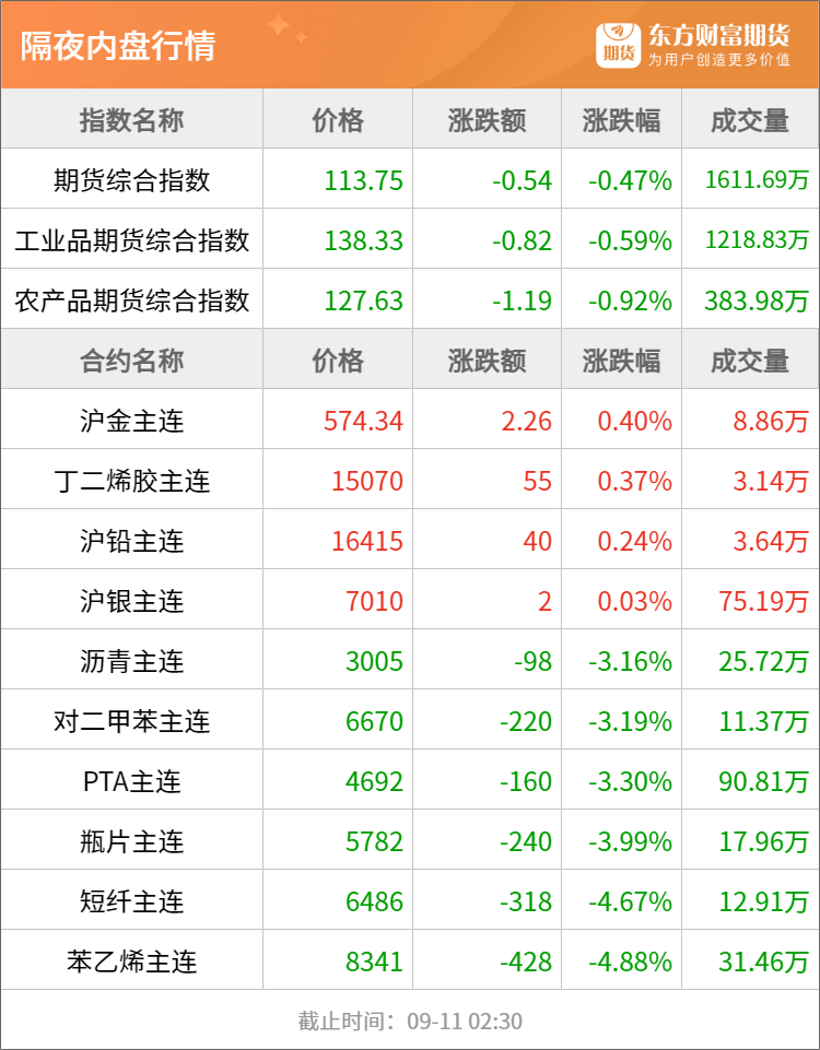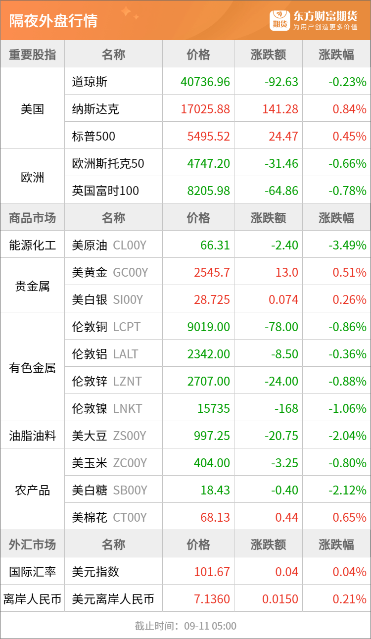 隔夜行情![]() ![]() 每日精选深夜突发!油价大跳水 供需双增 市场博弈加剧!猪价后市如何演绎? “金九银十”钢价待回暖 生产企业亏损面或缩窄 宏观产经央视新闻:海关总署公布的数据显示,今年前8个月,我国货物贸易进出口总值28.58万亿元,同比增长6%。其中,出口16.45万亿元,增长6.9%。进口12.13万亿元,增长4.7%。 中汽协:数据显示,8月,汽车产销分别完成249.2万辆和245.3万辆,环比分别增长9%和8.5%,同比分别下降3.2%和5%。1-8月,汽车产销分别完成1867.4万辆和1876.6万辆,同比分别增长2.5%和3%,产销增速较1-7月分别收窄0.9和1.3个百分点。 界面新闻:9月10日消息,多家媒体报道,据知情人士透露,欧盟准备小幅下调对自中国进口电动汽车拟议的加征关税。其中,对从中国进口的特斯拉电动汽车,加征税率将从拟议的9%调整为略低于8%。据悉,欧盟根据各公司提供的新信息做出上述调整。欧盟成员国将在关税定于11月生效前,就拟议的最终关税进行表决。 品种资讯黑色系期货 钢材:鞍钢在“2024年9月份产品价格政策”基础上,调整2024年10月份产品价格政策如下:其中热轧下调250元/吨。冷轧下调200元/吨。镀锌下调200元/吨。无取向硅钢下调200元/吨。中厚板下调250元/吨。线材下调200元/吨。螺纹钢下调200元/吨。(西本新干线) 9月10日,全国300家长、短流程代表钢厂废钢库存总量496.35万吨,较昨日降1.45万吨,日消耗总量44.35万吨,较昨日增0.73%;日到货总量42.90万吨,较昨日降4.74%。(Mysteel) 铁矿石:卫星数据显示,2024年9月2日-9月8日期间,澳大利亚、巴西七个主要港口铁矿石库存总量1293.3万吨,环比下降51.3万吨,略低于今年以来的平均水平。(Mysteel) 焦炭:9月10日河北市场钢厂对焦炭采购价下调50/55元/吨,调整后:一级湿熄焦(A≤12.5,S≤0.7,CSR≥65,MT≤7),报1710元/吨;一级干熄焦(A≤12.5,S≤0.7,CSR≥65,MT≤0),报1955元/吨;中硫湿熄焦(A≤13,S≤1,CSR≥60,MT≤7),报1510元/吨;以上均为到厂承兑含税价,10日0时起执行。(Mysteel) 农产品期货 生猪:华储网发布关于2024年9月14日中央储备冻猪肉轮换收储竞价交易有关事项的通知,本次收储挂牌竞价交易1.63万吨。(财联社) 截至9月10日14:00时,全国农产品批发市场猪肉平均价格为26.91元/公斤,较前一日下降1.1%。(农业农村部) 棉花:9月10日美棉M1-1/8到港价下跌17元/吨,报13751元/吨;国内3128B皮棉均价上涨33元/吨,报14535元/吨。内外棉价差扩大50元/吨至784元/吨。(Mysteel) 棕榈油:船运调查机构ITS数据显示,马来西亚9月1-10日棕榈油出口量为448985吨,较上月同期出口的470706吨减少4.61%。 据马来西亚独立检验机构AmSpec,马来西亚9月1-10日棕榈油出口量为412771吨,较上月同期出口的435413吨减少5.2%。 马来西亚棕榈油局MPOB数据,马来西亚8月棕榈油库存量为1883214吨,环比增长7.34%。马来西亚8月棕榈油产量为1893859吨,环比增长2.87%。马来西亚8月棕榈油出口为1525115吨,环比减少9.74%。马来西亚8月棕榈油进口为9970吨,环比减少4.90%。(新华财经) 有色/贵金属期货 碳酸锂:上海钢联发布数据显示,9月10日电池级碳酸锂价格较上次持平,均价报7.25万元/吨。(财联社) 沪铝:9月10日广东铝锭库存23.1万吨,较上一交易日减少0.04万吨;无锡铝锭库存30.8万吨,较上一交易日减少0.46万吨;巩义铝锭库存6.66万吨,较上一交易日减少0.14万吨。(上海有色网) 能化期货 原油:欧佩克月报预计2024年全球原油需求增速为203万桶/日,此前预期为211万桶/日。预计2025年全球原油需求增速为174万桶/日,此前预期为178万桶/日。2024年8月其原油日产量平均为2659万桶,较7月减少19.7万桶,主要受利比亚产量下降的影响。(财联社) 尿素:9月10日尿素行情延续弱势下行,部分主流地区报价下调10-50元/吨左右。(农时达情报) 环球视野财联社:苹果预计第四季度的一次性所得税支出最高约为100亿美元。9月10日,欧洲法院宣布搁置普通法院2020年的判决并确认欧盟委员会2016年的国家援助决定。 央视新闻:德国政府10日发布的数据显示,衡量德国通货膨胀水平的一项经济指标8月涨幅为三年多来最低。路透社评论,这有利于欧洲中央银行本周宣布降息。 每日关注![]() (文章来源:东方财富研究中心) (责任编辑:迷你学人) |