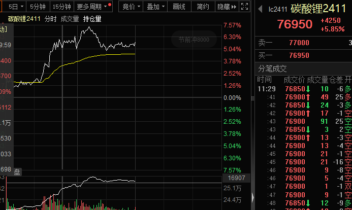 电池产业链概念拉升。 三大股指早盘分化明显,红利股跌势延续,高位股开盘继续下挫,科森科技、老百姓、大众交通、好上好、新亚制程均跌停,国企改革概念下挫;锂矿、光伏等新能源方向集体走强。 双成药业今日复牌一字涨停,公司是一家集化学合成多肽药品研发、生产和销售为一体的国家高新技术企业。9月10日晚间,公司发布重组预案,拟通过发行股份及支付现金的方式向奥拉投资等25名交易对方购买其合计所持有的宁波奥拉半导体股份有限公司100%股份。 该交易完成后,奥拉股份将成为上市公司双成药业的全资子公司,双成药业将实现战略转型,从化学合成多肽药品的生产转为重点发展模拟芯片及数模混合芯片设计业务。 网传大厂停产 碳酸锂期货大涨 早盘,碳酸锂期货主力合约一度大涨超7%,午间收盘涨幅5.85%,报76950元/吨。现货方面,上海钢联发布数据显示,今日电池级碳酸锂价格较上日上涨1000元,均价报7.35万元/吨。 ![]() 碳酸锂期货现货双双大涨,主要受传闻影响——网传宁德锂选矿厂将停产,据估算其三个冶炼厂月产量为5—6kt LCE。 目前了解宁德选矿确定暂停一条线,未接到明确通知要全部停产。宁德的枧下窝矿区原矿平均品位0.27%,需要300吨原矿生产一吨碳酸锂,根据市场对宁德时代枧下窝矿区生产成本测算,宁德时代该矿的现金成本约在10万元/吨附近。 国泰君安最新发布研报表示,碳酸锂新增项目产能释放暂缓,预计锂板块最快于2026年前进入上行周期。在建项目中,Sal de Vida原计划两处扩建项目改为依次完成,建设放缓;PPG盐湖项目建设工作尚未展开,投产进程推迟;Galaxy项目建设暂停。整体来看,当前供给侧已经有收缩迹象,锂矿行业资本开支下行明显,对未来2—3年的新增供给有压制预期。 从需求端来看,国泰君安表示,长期新能源需求仍维持每年15%—20%同比增长,其中储能锂电需求快速增长,对碳酸锂需求当前起主要承托作用。高成本矿山开始陆续减产,伴随价格进一步下跌甚至或将停产。下游行业高景气持续背景下,碳酸锂价格有望于2026年—2027年迎来上行周期,锂板块通常先于商品价格6—9个月启动上涨。 锂电池相关板块大幅上涨 受碳酸锂价格大涨影响,锂矿板块早盘逆市大幅拉升,“锂王”天齐锂业早盘涨停,金圆股份也涨停,德方纳米、赣锋锂业涨超7%。天齐锂业涨停较为罕见,上次涨停还是在去年5月,今年从未有过一次涨停。 ![]() 动力电池板块早盘也大幅拉升,德福科技20cm涨停,南都电源、信德新材涨超10%,科恒股份、盟固利、金银河、曼恩斯特、鹏辉能源等跟涨。 ![]() 此前,中国汽车动力电池产业创新联盟刚刚公布动力电池月度信息,8月我国动力电池装车量47.2GWh,环比增长13.5%,同比增长35.3%。1—8月,我国动力电池累计装车量292.1GWh,累计同比增长33.2%。 此外,天齐锂业近期在互动平台表示,公司目前已完成下一代固态电池关键原材料硫化锂产业化相关支持工作,累计与十余家下游客户进行打样,持续开展产品质量提升和降本技术优化。 动力电池概念股整体业绩分化 据证券时报·数据宝梳理,9月以来,中伟股份、信德新材、欣旺达均获得超10家机构调研。 中伟股份月内获得26家机构调研,公司主要从事锂电池正极材料前驱体的研发、生产、加工及销售。公司表示,2024年上半年镍、钴、磷、钠四系产品销售量超14万吨,同比增长15%,其中镍系加钴系产品销售量超12万吨。按现在的年度出货情况预计,今年镍自供比率近50%,明年将继续提升。 欣旺达在调研活动中表示,公司储能电芯开始量产,2024年上半年储能电芯出货0.98Gwh,为动力电池类业务营收带来一定增长。目前公司第一代半固态电池已经完成开发,第二代半固态电池能量的电芯样品已经开始中试试验,第三代聚合物复合全固态电池已完成实验室验证,预计2025年完成产品开发。第四代全固态电池还在开发中,预计2027年完成实验室样品制作。 今年以来,在行业整体降本的大趋势下,电池产业链各环节竞争激烈,产品价格持续低位运行。动力电池股价承压,不少概念股的股价延续跌势。目前动力电池概念股中,仅比亚迪、宁德时代、欣旺达的股价年内累计录得上涨,近七成个股的股价跌超20%,恩捷股份、盟固利、嘉元科技等股年内均跌超50%。 业绩表现方面,动力电池概念股整体业绩分化明显,上半年石大胜华、欣旺达、国轩高科、比亚迪等8股依旧保持业绩稳定增长。 ![]() (文章来源:证券时报网) (责任编辑:迷你学人) |
