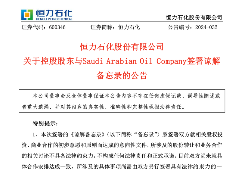 宣布了!12万亿中东巨头又出手!与荣盛石化、恒力集团分别签署协议