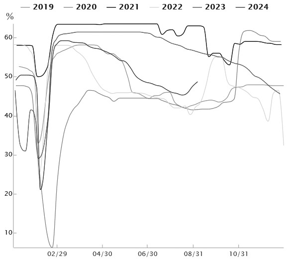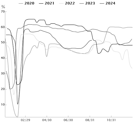 图为织企坯布开机率(TTEB)季节性 本轮下跌的核心驱动包括: 第一,新年度丰产预期加强。受目标价格补贴政策限制补贴产量510万吨、政策引导次宜棉区退出棉花种植以及棉花种植收益下降等因素影响,新棉开始种植前,市场预计新疆棉花种植面积同比不会增加,若出现播种期低温灾害、生长期高温天气等恶劣天气,棉价重心有可能逐步上移。根据中国棉花信息网公布的实播面积报告,本年度新疆棉花种植面积为3565.4万亩,同比小幅下降1.4%,基本符合预期,但棉花的生长周期内并未出现极端天气,因此新年度新疆棉花产量反而可能增加。 第二,需求未见明显改善。国内外棉花需求整体偏弱,进入淡季后,下游纺织企业开机率下降幅度以及成品库存的累积幅度均高于往年同期水平。 第三,美棉价格走弱拖累国内棉价。今年年初,美棉交割品库存处于历史低位,非商业多头大幅增仓,美棉价格最高突破100美分/磅。3月份以后,随着交割品库存大幅增加,非商业多头离场,美棉“逼仓”失败。同时,美棉种植面积上升,主产区天气状况良好,丰产预期增加。在供需宽松格局下,美棉价格高位回落,进一步拖累国内棉花价格。 近期,市场整体情绪不高,国内棉花价格出现一定幅度反弹后再度大幅回落,但并未跌破前低位置,阶段性底部或已形成:一方面,棉花价格已经进入低估值区域;另一方面,当前价格对新年度供应宽松格局已经完成计价,且需求端存在边际改善的情况。 从2010年至今的行情走势看,当前棉花价格已经处于低估值区域。从历史价格看,棉价低于13000元/吨的年度(按棉花生长周期划分)主要有2015/2016年度、2018/2019年度和2019/2020年度。 2015/2016年度,从供应端看,国内棉花大幅减产,2015年5月USDA预测的国内棉花产量为588万吨,同比减少65万吨,且连续下调2015/2016年度棉花产量,新棉上市之前的预测产量为566万吨,2016年1月的预测产量为518万吨,同比减少135万吨。从需求端看,2015/2016年度棉花消费预期偏弱,USDA连续下调国内棉花消费量,从最高的784万吨,下调至最低的697万吨,同比减少65万吨。 从生产与消费的角度看,2015/2016年度国内棉花供需紧张,郑棉价格重心有望进一步上移。但2015/2016年度国储库存偏高(公开资料显示为1000万吨左右),市场预期国家会大量抛储,棉农和轧花厂加快销售节奏造成棉价一路下跌。但2016年4月郑棉期货价格开始筑底反弹并持续走强,在2016年7月中旬左右突破16000元/吨关口,核心驱动是抛储政策与前期市场预期存在较大的背离: 第一,抛储时间与预期不符。根据往年经验,抛储时间通常在每年2至3月开始,但2015/2016年度国家发改委4月15日才发布储备棉轮出相关政策,2016年5月3日才开始轮出。第二,政策限制每日挂牌销售量不超过3万吨。第三,2016年6月下旬至7月下旬,抛储矛盾激化。由于储备棉出库困难,公检速度跟不上,甚至不能满足每日3万吨的挂牌量,再加上纺织企业需求提升,市场价格开始大幅上涨,成交率长时间维持在100%,成交均价最高超过15000元/吨。此后,市场传出抛储延期的消息,成交量和成交率均有所回落,期货价格大幅回调。国家发改委于2016年8月8日正式发布公告,将抛储时间延长至2016年9月30日,且不限制总的抛储数量。2016年9月以后,商业库存偏紧,郑棉再度走强,突破15500元/吨关口,拍储的积极性重新回升,当月中下旬拍储成交率达到100%,2016年9月拍储成交量达到61.8万吨。 2018/2019年度,从供应端看,本年度棉花供应充足,2018年5月USDA预估产量为588万吨,之后3个月由于天气因素下调至577万吨。随着新棉的上市,USDA逐步上调2018/2019年度棉花产量,2019年4月预估为604万吨。但消费预期偏弱,2018年5月USDA预估2018/2019年度国内棉花消费量为903万吨,2019年4月下调至882万吨。从行情走势看,2019年1至4月棉花价格保持震荡上行趋势,主要原因是全球市场存在产需缺口,2018年12月USDA预估全球棉花产需缺口达到150万吨(产量2585万吨,消费2735万吨)。同时,国内抛储时间推迟,2019年4月19日才发布相关抛储政策。2019年5月初,中美贸易摩擦升级,消费预期下滑,棉花价格重心进入下行通道,最低触及12000元/吨关口。 2019/2020年度,从供应端看,产量变化不大,2019年5月USDA预测的产量为604万吨,2020年4月USDA预测的产量为593万吨。从需求端看,受疫情影响,USDA大幅下调2019/2020年度棉花预期消费,2019年5月预估消费量为904万吨,2020年4月预估消费量为762万吨。2019年9月至2020 年1月初,中美贸易摩擦缓解,棉花消费预期趋向乐观,棉花价格稳步上涨。2020年1月至2020年4月,受疫情影响,节后纺织厂工人无法返回工作地,消费预期下行,郑棉价格跌至历史低位,接近10000元/吨关口。之后国内疫情得到有效控制,纺织行业逐步恢复,消费预期向好,棉价估值修复,郑棉价格重心不断上移。当年国家抛储50万吨,成交率基本在100%,成交价格也不断上移。 从以上情况可以看出,若无突发事件改变棉花供需结构(比如2015/2016年度的高储备库存、2018/2019年度中美贸易摩擦、2019/2020年度新冠疫情暴发),当前棉价已处于低估值区间。 基本面边际改善。从下游纺织企业的运行情况看,需求端已出现边际改善。一方面,纺织企业的开机率有所回升,织布企业的棉纱原料库存大幅回升;另一方面,纺织企业的成品库存(棉纱和坯布)出现明显下降。 综上,棉花价格已处于低估值区域且需求端出现边际改善,若无突发事件明显改变棉花供需格局,棉价阶段性底