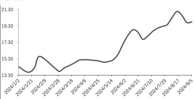 图为肥标价差(元/斤) 最后,对市场行情的乐观预期,促进养殖端压栏增重。据农业农村部数据,2022年12月至2024年4月,全国能繁母猪存栏持续减少,累计去化9.2%,给市场带来了猪价向好预期。此外,受去年下半年生猪疫病影响,市场对2024年生猪行情持乐观态度,因此养殖端放缓出栏节奏,压栏增重。 总之,对猪价向好的预期、具有较高性价比的造肉成本以及较高的肥标价差,带动二育和散户惜售情绪增加,导致出栏均重短期快速提高且居高不下。四季度是肥猪需求旺季,受养殖群体结构改变等因素影响,预计出栏均重仍将维持高位。 综上,短期看,中秋备货带动屠宰量放量回升,但产能集中释放导致猪价仍未走出“逢节必跌”的魔咒。节后若无明显消费利好支撑,供应压力犹存,价格或继续下调。 中期看,倘若中秋节前后生猪价格回调较为顺畅,9月下旬二育集中出栏后栏舍空置,价格跌至二育补栏心理价位,可能出现比较集中的二育进场补栏现象,伴随国庆节备货需求的增加,猪价或再次走高。四季度是肥猪需求旺季,猪价回调空间有限,可能维持高位震荡态势。 套期保值方面,关注逢高卖出LH2501和LH2503合约或买浅虚看跌期权的机会。投机方面,中期可逢低做多LH2411合约。关注二育及压栏产能的释放以及二育进场节奏。(作者期货投资咨询从业证书编号Z0011345) (责任编辑:迷你学人) |