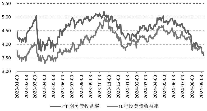 经过4月的短暂反弹之后,5月至今美债收益率持续下行。驱动美债收益率下行的动力来源于美国经济减速和美联储降息预期。当前金融市场的关键分歧是美国经济会不会衰退,这关系到美联储降息的力度和时间。与此同时,欧洲和日本经济在走弱,金融市场脆弱性增强,市场避险情绪升温,进一步推升了美债需求,拉低了美债收益率。 展望后市,我们认为美债收益率还将继续下行,但很难回到2022年加息前的低位。此轮降息大概率是预防式降息,暂时看不到美国经济衰退的迹象。另外,产业重构、逆全球化和供应链不稳定都意味着全球通胀重心上移,很难回到新冠疫情暴发前的低位,因此美债收益率下行趋势是渐进的、缓慢的。 美国经济减速明显,美债收益率回落 从各项指标来看,美国经济减速明显,这意味着融资需求降温,美债收益率下行的大方向是确定的。消费方面,7月以来美国的消费虽然依旧有韧性,但较一年前明显放缓。美国7月零售销售环比增长1%,好于6月的-0.2%,但环比增长并不稳定,时而负增长时而正增长。 从信贷来看,7—8月,工商业信贷有所回升,因利率回落,但抵押贷款和消费贷款增速继续放缓。截至8月28日,美国商业银行工商业贷款同比增速回升至0.49%,年初至5月底同比持续负增长;抵押贷款同比增速跌破2%,一季度在3%以上;消费贷款同比增速降至1.24%,一季度在2%以上。 就业市场走弱是对美国经济减速的确认。美国8月非农就业人口增长14.2万人,不及预期的16.5万人,7月数据从11.4万人大幅下修至8.9万人,且6月数据下修了6.1万,两个月合计较之前报告的数据下调了8.6万人。8月,美国失业率从7月的4.3%略微下降0.1个百分点至4.2%,但依旧是2021年11月以来次高纪录。值得关注的是,包含希望寻找全职工作的兼职劳工的U6失业率进一步攀升至7.9%,7月该指标为7.8%;因为经济原因而只能找到兼职工作的人,比例上升到了7.9%,是2021年10月以来的最高水平。 8月美国非农就业数据公布之后,市场对美联储降息50个BP的预期升温。芝商所FedWatch工具显示,交易员预计美联储9月降息50个BP的可能性升至47.0%,降息25个BP的可能性降至53%。 美联储预防式降息,力度不会特别大 回顾20世纪70年代至今,美联储分别启动了6次降息,其中有2次预防式降息,4次衰退式降息。预防式降息分别为1984年12月20日—1986年8月21日、1995年7月6日—1998年11月17日,在这两个时期美国GDP都出现了减速,但没有出现过两个季度负增长,即没有出现衰退。 结合当前美国经济数据和私人部门杠杆情况,我们认为美国经济暂时没有衰退的风险,此次降息大概率是预防式降息。从历史来看,美联储前两次预防式降息,发生在经济减速但尚未出现明显衰退的时期,降息力度较小,次数较少,目的是通过降低融资利率来缓和经济衰退的风险,扶持经济企稳并回到较快增长的轨道中。 截至9月10日,对货币政策比较敏感的2年期美债收益率下滑至3.59%,年内高点是4月18日创下的4.98%,去年同期为4.97%。假如美联储9月降息50个BP,那么2年期美债收益率有可能下行至3.3%;如果降息25个BP,那么2年期美债收益率可能维持在当前水平。数据显示,2年期美债利率与有效联邦基金利率(EFFR)倒挂程度达到158比特率,创2008年以来新高。而2年期美债与EFFR利率倒挂,意味着市场抢跑定价美联储未来的降息,一般发生在降息周期的早些时候。