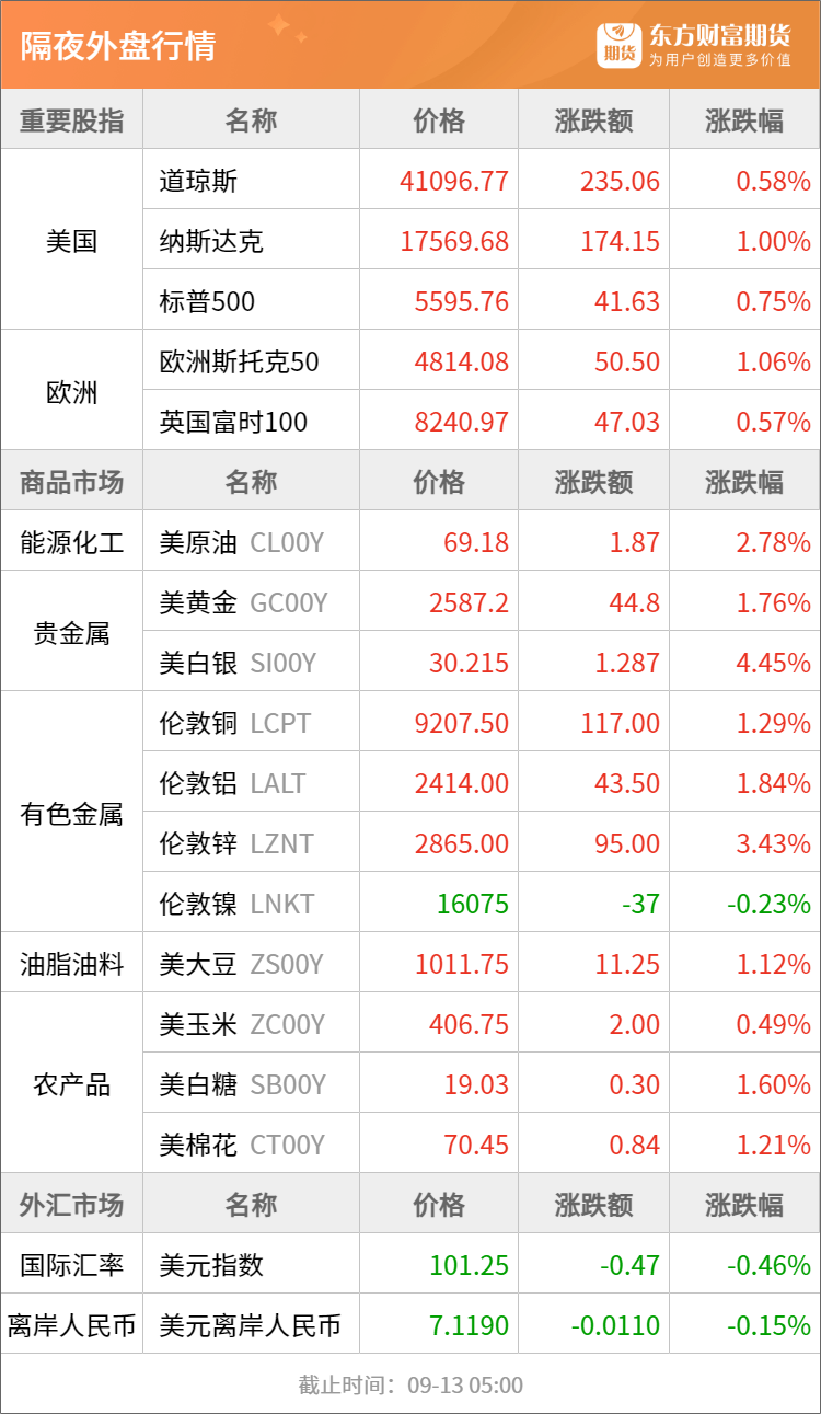 东方财富期货早餐 9月13日 周五