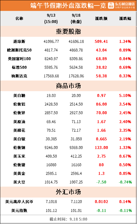 东方财富期货早餐 9月18日 周三