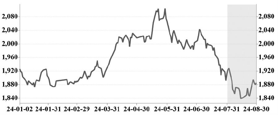 全球大类资产中,国内市场避险属性显现。中长期来看,中证商品指数与股债指数相关性较低,是资产配置的有效工具,有利于投资者优化资产配置结构、分散投资风险。 8月,中证商品期货指数(CCICFI)月度收益率为0.8%,年化波动率为11.60%,于8月1日达到月内最高值1935.57点,此后指数震荡下行至8月15日最低值1825.58点,究其原因在于商品受到了海外经济下行风险的影响。8月下旬中证商品期货指数估值修复源于需求淡季渐入尾声,部分板块超跌反弹。 一是从板块维度看,贵金属及有色金属板块录得正收益,其他板块录得负贡献,贡献度由大到小依次为贵金属、有色金属、农产品、黑色金属及能源化工。贵金属方面,美联储降息周期临近,8月央行年会鲍威尔宣称无需过多考量通胀,美联储降息阻碍减少,利率驱动对贵金属的利多支撑得以延续。有色金属亦受到降息政策预期提振,且低估值因素驱动部分有色金属供需好转。农产品方面,与经济周期的低相关性决定了农产品相对抗跌,但农产品供应增长压力抑制了天气题材热度带来的上涨空间,农产品板块录得负收益。黑色金属方面,需求淡季下负反馈持续抑制下游补库及开工意愿。能源化工方面,油价持续受到海外经济下行风险和OPEC+成员国供应恢复预期影响,原料支撑回落带动化工品估值下移,故能源化工板块8月录得较大跌幅。