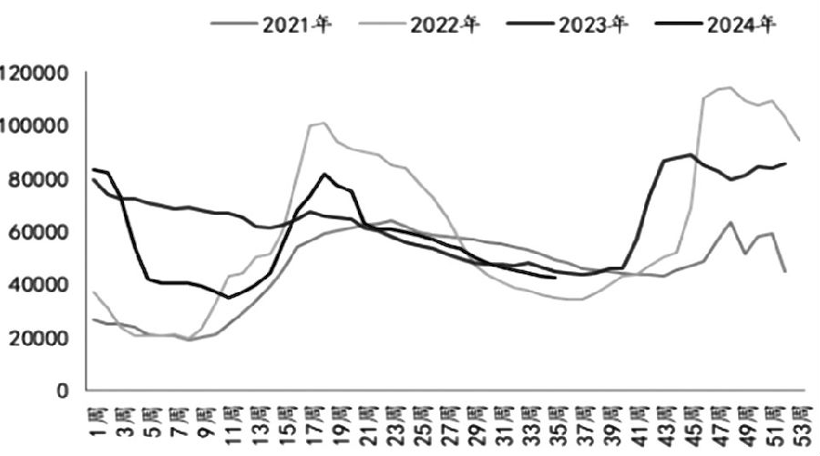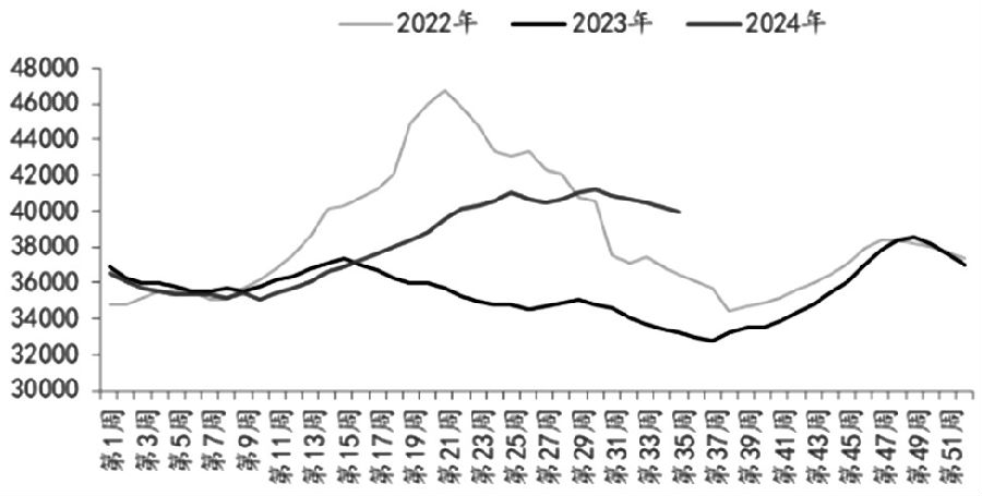 图为样本企业花生库存统计(单位:吨) 目前花生油价格处于持续回落状态,9月13日,国内一级普通花生油主产区均价在 14300 元/吨,比年初下降8.33%;样本企业花生油加工利润为-754元/吨,比去年同期回落781元/吨;9月13日国内花生油样本企业厂家花生库存统计42626吨,处于历史同期中等偏低水平。花生油周度库存统计38960吨,环比有所回落,但仍处于历史同期偏高水平。低榨利、高库存的情况下,油厂多保持低开机率运行,收购态度谨慎。榨利情况扭转之前,需求端对价格提振的可能性不大。目前花生现货价格处于回落状态:9月12日,全国通货米均价为 8980 元/吨,较上周下调 60 元/吨。本周开封大花生产区蒜茬花生陆续上市,南阳部分产区少量上市麦茬花生,预计10天左右麦茬花生陆续上市。产区悲观情绪或将延续。 相关油脂及副产品方面,近期,MPOB报告利空,大豆进口量创出新高,压榨产能和库存依旧处于高位,豆油供需宽松持续,油脂有回调风险。同时豆粕库存高于历史同期水平,国内油脂蛋白粕板块基本面偏弱,花生粕价格短期难有起色。四季度棕油进入减产季且库存将逐渐下滑,印尼生柴掺混政策持续发酵,2024/2025年度美豆及加菜籽收割压力释放完毕而南美大豆的播种生长存在不确定性,欧菜籽减产以及生柴需求利多显现,令国外油籽油料供需格局转向紧张。同时,国内进入油脂消费旺季,需求转好有助于实现去库。因此,在基本面改善后,国内油脂价格有望重新走强。