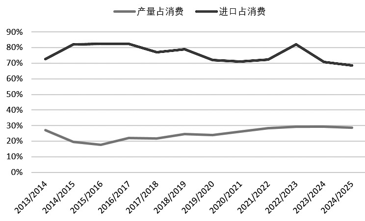 图为印度豆油、菜油、棕榈油和葵花籽油产量和进口占消费的比重(%) 印度本土油料产量以及压榨产能仍然不足,虽然现在其上调进口关税保护本土油料产业,但在人口结构偏年轻、人口数量还在增长的背景下,中长期印度油料供应仍需要依赖进口的补充。因此印度宣布增加食用油进口关税后,马来西亚棕榈油价格跌幅有限。短期看,印度国内压榨供应无法取代进口供应,另外,当前马来西亚和印度的精炼棕榈油价差再度转负,也从侧面说明了印尼的棕榈油产量不太理想。 从上周国内土畜商会和油厂举办的线上会议看,后续对进口加拿大菜籽加税的可能性是比较大的,也会影响油厂采购远月船期的油菜籽。未来菜棕油价差是否继续扩大,关键要看菜系品种价格走势是否持续偏强,而不是棕榈油价格的弱势,投资者需关注接下来关税等相关政策是否升级。巴西大豆虽然播种延迟,但根据欧洲模型,预计10月份巴西中部和北部的降雨会比之前预计的多很多,降雨季节性增多利于新季大豆生长。2023/2024年度因巴西中西部高温干旱导致大豆减产,但今年更可能出现弱拉尼娜现象,2024/2025年度南美大豆大概率丰产,将限制美豆的反弹空间,国内豆棕油价差也不会回归历史平均水平,除非南美出现较为极端的天气。操作方面,笔者更倾向于逢高做缩豆棕油2505合约价差,毕竟印尼B40生物柴油政策还能执行,只是执行时间可能比预计的稍晚一些。(作者单位:紫金天风期货) (责任编辑:迷你学人) |