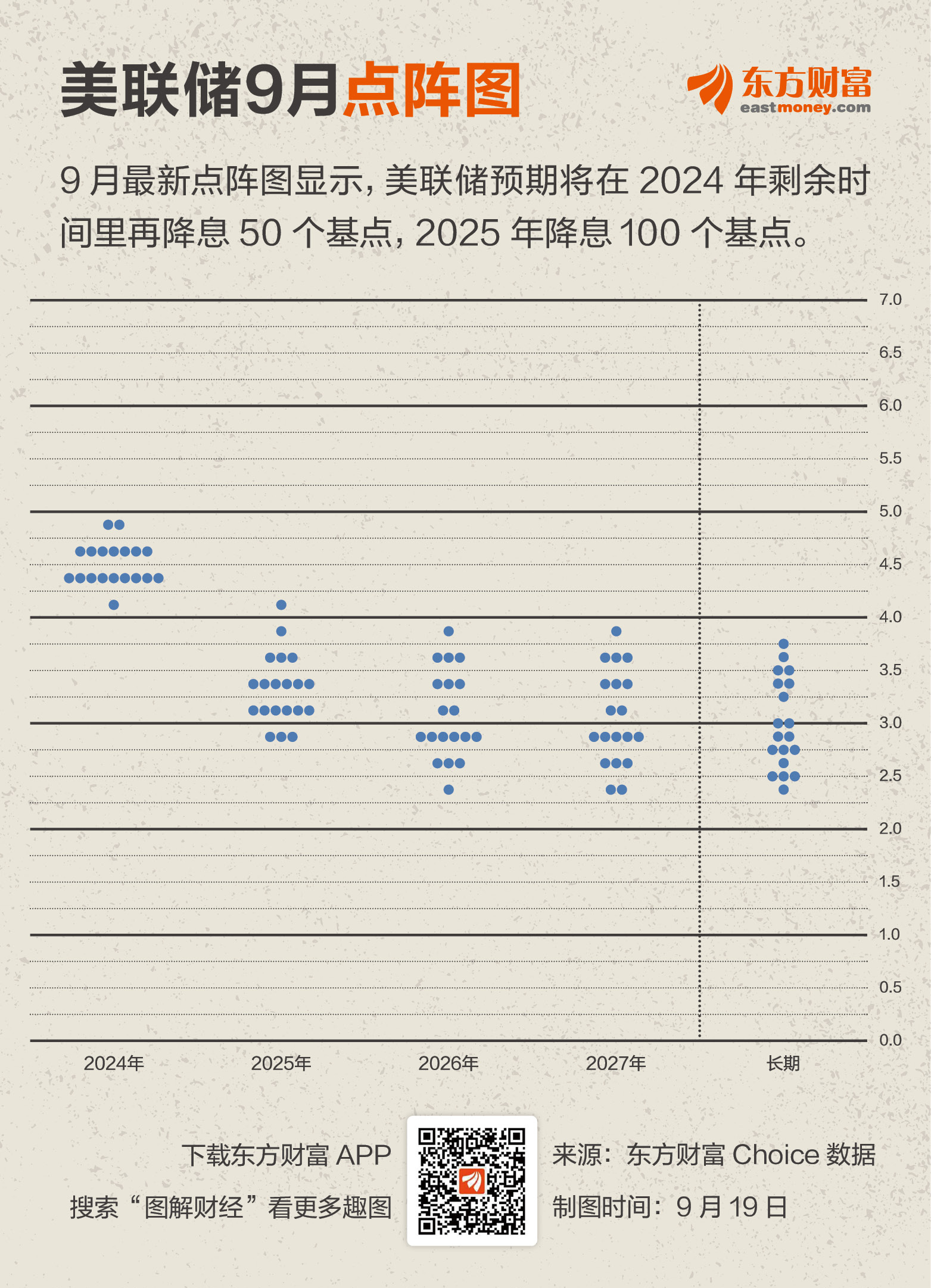 ![]() 北京时间9月19日(周四)凌晨,美联储宣布下调基准联邦基金利率区间50个基点至4.75%—5.00%。 最新公布的点阵图显示,美联储未来大概率仍将继续进行降息。点阵图是美联储官员对未来利率走向的预测,每位官员都会在该图上标示自己对未来利率的看法。 具体来看,美联储19位政策制定者(每位对应上图中一个蓝点)对2024年末美联储利率预期的中位数落在4.25%—4.50%,较当前利率低50个基点,意味着美联储年内还将降息50个基点,2024年将累计降息100个基点。 点阵图还显示,美联储政策制定者预期,2025年末利率将落在3.25%—3.50%,这意味着明年将累计降息100个基点。2026年将降息50个基点,长期利率维持在2.75%—3.00%之间。 值得注意的是,美联储政策制定者之间也会存在分歧,他们对利率调整的观点也会随着经济形式的变化而改变,对当前点阵图显示的预期可以参考但不能盲从。 (文章来源:东方财富研究中心) (责任编辑:迷你学人) |