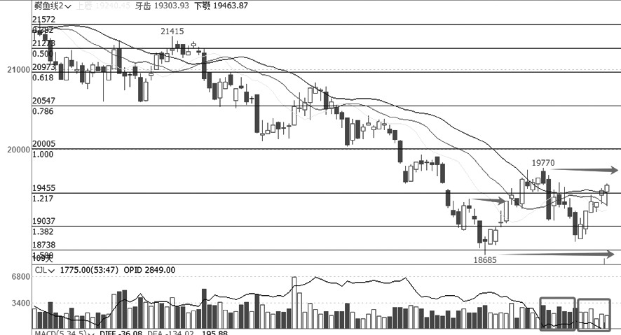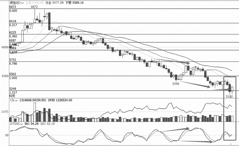 从PVC加权日线走势图可以看出,该品种于5月下旬见顶6672元/吨以后展开一轮单边下跌走势,在下跌过程中波动性不大,但是趋势性很强,直至见底5399元/吨反弹以后,PVC下跌模式发生转变,由原来的稳定下跌模式转变为震荡探底模式。近期创新低后,经过几天的横盘震荡,本周破位下行,但是走势并未乘胜追击,而是见底反弹,并有了小型的指标底背离。接下来看当下的反弹能否上破前小型平台,即使反弹,预计也处于均线系统以下运行,维持弱势震荡探底状态。(中辉期货 李卫东)