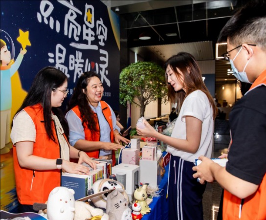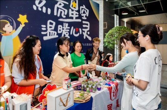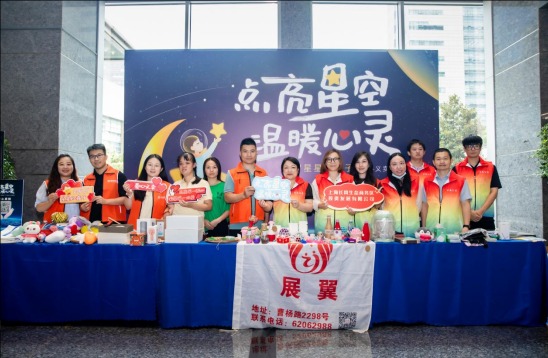 孤独症,也被称为自闭症谱系障碍(ASD),是一种影响社交互动、沟通能力和行为模式的神经发展性障碍。在我们身边,有数百乃至上千儿童面临这样问题,他们如同夜空中的星辰,静静闪烁,期待着被更多的人看见和理解。 9月12日,由金信期货有限公司(以下简称“金信期货”)党支部联合长风生态党支部、上海展翼儿童培智服务中心、上海新翼公益发展服务中心的“点亮星空,温暖心灵”爱心义卖活动在长风大厦成功举办。金信期货党支部书记陈锋、长风生态公司党支部书记刘炳群带领公司党员代表、工会代表及服务中心代表共同参与义卖。