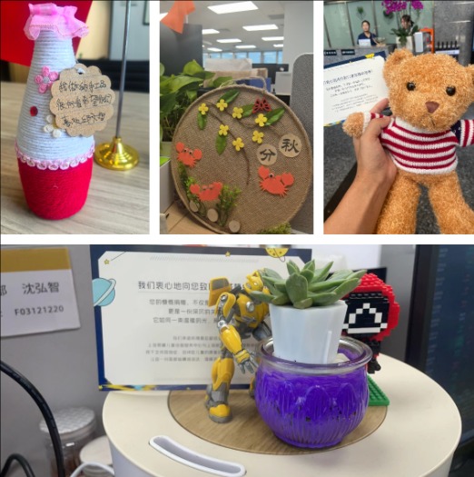 活动现场,义卖小摊上摆满了金信期货、长风生态公司职工带来的玩偶、闲置生活用品、书籍等,还有星宝们精心制作的各式各样的手工艺品,从精致的节气摆件、挂饰,到充满创意的花瓶,每一件作品都凝聚了星宝们的心血和汗水。义卖摊位迅速吸引了众多楼宇白领的关注,“摊主们”积极向顾客介绍义卖商品与爱心集市的意义,星宝“玥钥”则更加主动,她拿起自己的盆栽,向“哥哥、姐姐们”卖力的介绍着,她的声音虽然有些颤抖,但她的眼神却充满了坚定和自信。