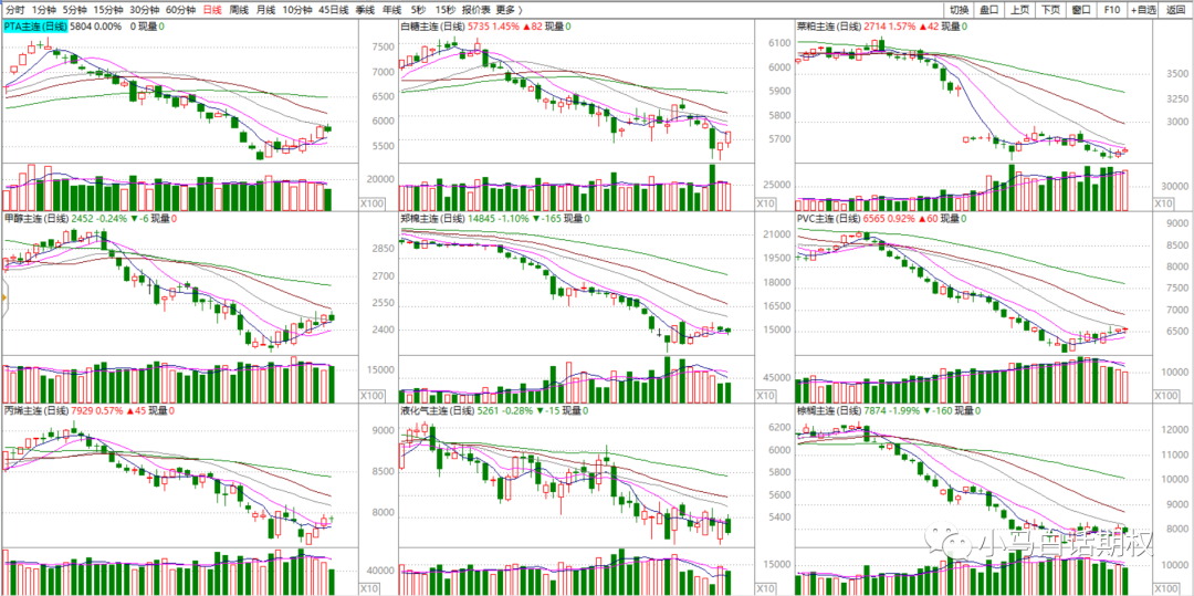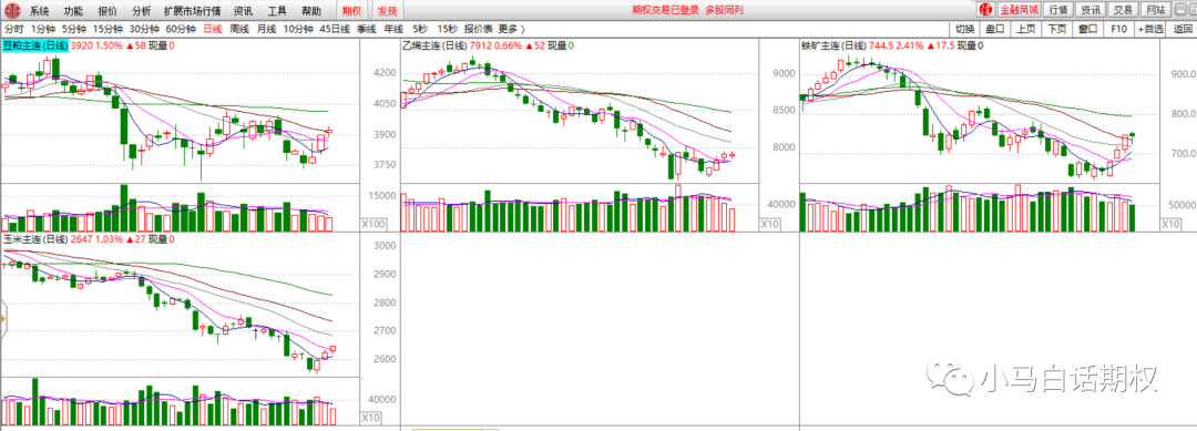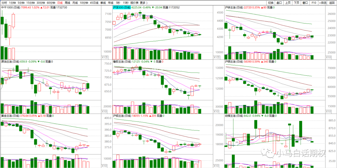 2.依托走势做多空。对于股指、商品期权标的,我们看到都是经典的多空转换走势,非常棒。如果放到30分钟级别,就更加清楚了,但是周期很快,需要能抓得住。