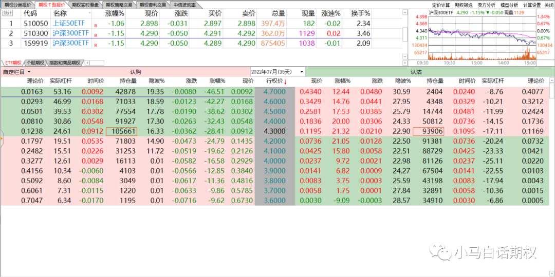 图21 6月22日300ETF期权7月合约T型报价
