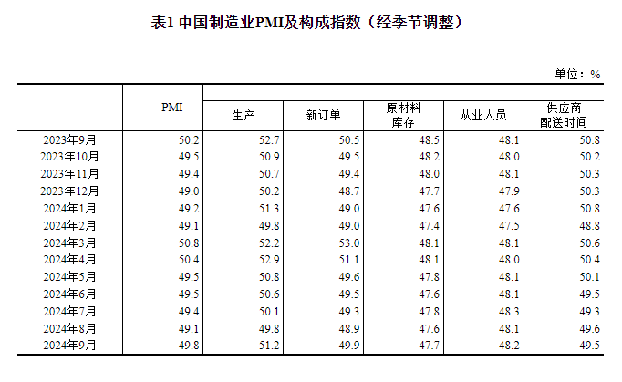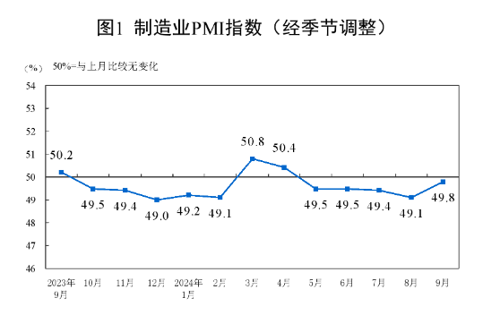 统计局:9月官方制造业PMI为49.8% 比上月上升0.7个百分点