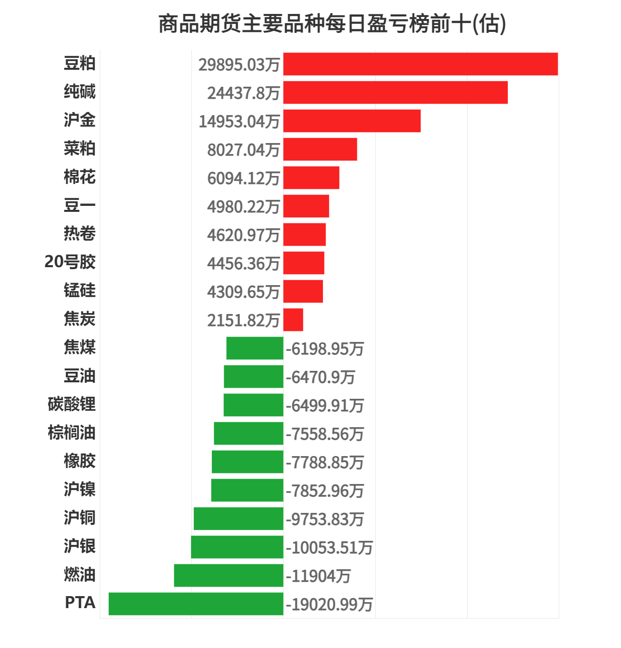 每日期货龙虎榜,带你深度了解市场。 市场一览:周二商品期货综合指数下跌0.55%,日内资金净流出52.88亿元。 市场成交量为3445.12万手,成交额为1.87万亿元。 持仓量为2821.26万手,较前一交易日增加22.93万手。 市场成交量前十和持仓量前十如下图所示: ![]() ![]() ![]() 品种盈亏榜:今日商品期货上榜机构席位中豆粕盈利第一,为29895.03万元。 PTA亏损第一,为19020.99万元。 ![]() 盈亏数据为对应的龙虎榜持仓的估算数据。 注:可通过点击东方财富期货APP资讯页面“龙虎榜”及东方财富期货PC端左侧“龙虎榜”查看各类机构持仓及盈亏榜单信息。点此查看>> ![]() ![]() 本信息来源于东方财富Choice数据,相关数据仅供参考,若数据有误,以交易所发布数据为准,不构成投资建议。 (文章来源:东方财富研究中心) (责任编辑:迷你学人) |