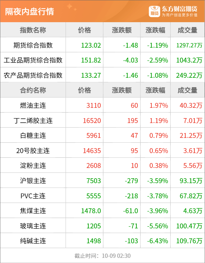 东方财富期货早餐 10月9日 周三