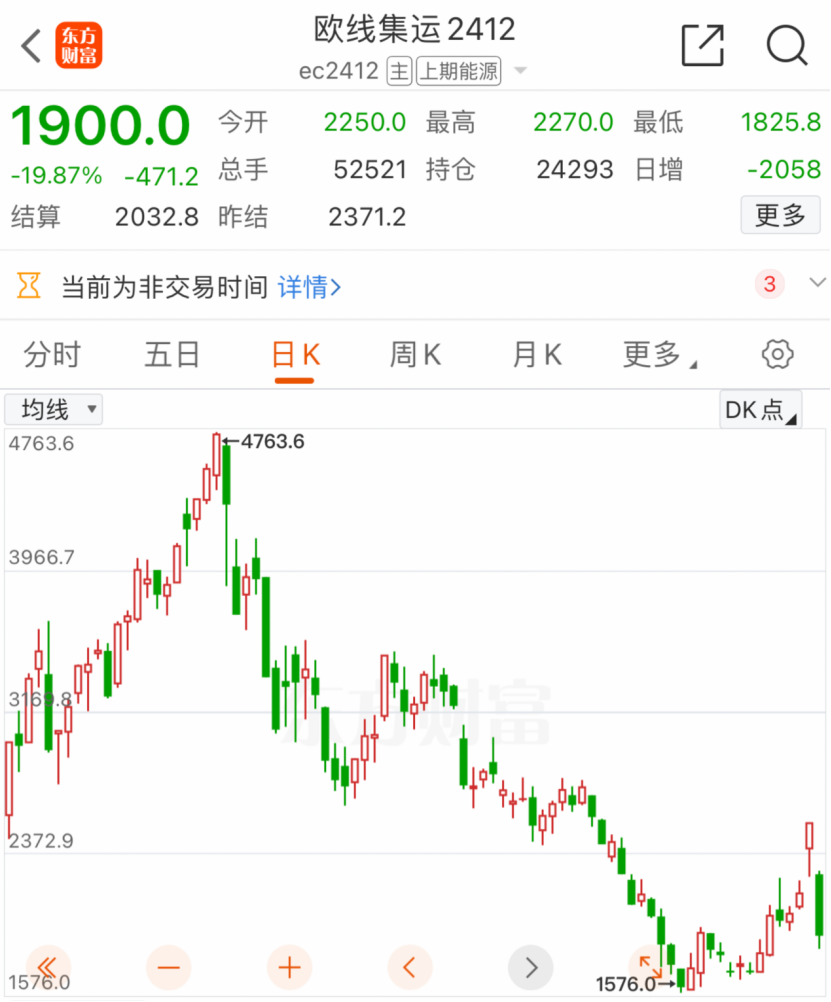 利空袭来!火爆的航运业大降温 欧线集运主力合约暴跌20%