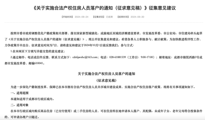 日前,成都市《关于实施合法产权住房人员落户的通知(征求意见稿)》完成了意见征集。 ![]() 《征求意见稿》中提到,在本市行政区域内购买商品住房(已交付使用)或二手住房的人员,可在住房所在地申请本人落户,其配偶、未成年子女、老年父母符合投靠条件的,可申请办理户口随迁。通知具体实施日期尚未公布。 以下为《征求意见稿》全文: 为进一步深化户籍制度改革,保障已在本市拥有合法产权住房人员共享城市建设成果,实施合法产权住房落户政策,现将有关事项通知如下。 一、适用范围 本通知适用于成都市行政区域内。 二、适用对象 在本市行政区域内购买商品住房(已交付使用)或二手住房的人员,可在住房所在地申请本人落户,其配偶、未成年子女、老年父母符合投靠条件的,可申请办理户口随迁。 三、办理要求 (一)本通知规定的住房是指通过购买方式取得合法所有权的住宅用房。 (二)申请材料 产权人应本人到场申请,并提供以下材料: 1﹒入户申请表; 2﹒产权人和入户人员的居民户口簿、居民身份证; 3﹒房屋信息查询记录; 4﹒《不动产权证书》或《房屋所有权证》或购房合同; 5﹒申请随迁的,提供关系佐证材料;如:结婚证、出生医学证明、独生子女证、收养证、亲子鉴定书等证件,法院裁决书、判决书等证明亲属关系的法律文书,档案管理机关加盖印章证明亲属关系的个人档案等。 6﹒房屋产权为两人及以上人员共有的,一并提交其他产权人同意落户声明和居民身份证。 (三)办理地点 线下办理:各区(市)县公安办证中心。 线上办理:“成都公安微户政”公众号可申请网上办理。 四、特殊情形 (一)未成年人单独购房,申请入户时至少有一位监护人同时迁移。 (二)非直系亲属共有同一套产权住房的,不适用本通知规定。 (三)除抵押登记外,其他被限制登记的住房不能申请办理购房入户。 五、工作职责 市发展改革委负责该项工作的统筹推进; 市公安局负责落户工作具体实施; 市住建局负责配合对购买住房的信息核验确认; 区(市)县政府(管委会)及其他相关部门按职责统筹考虑优化配置公共资源和服务保障。 六、本通知自2024年X月X日起施行,有效期3年。 特此通知。 (文章来源:界面新闻) (责任编辑:迷你学人) |