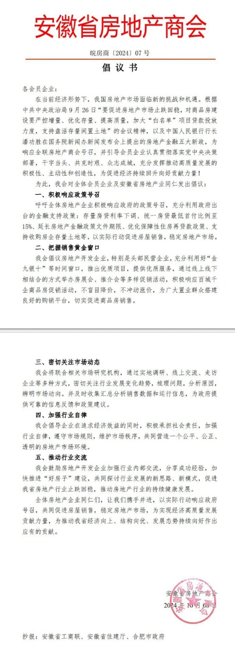 安徽房地产商会呼吁房企:不盲目降价 不冲动涨价!