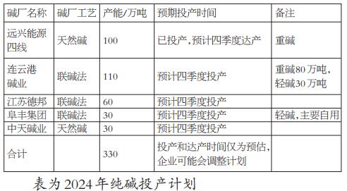三季度纯碱在供应严重过剩的情况下,期现价格同步大幅下跌。三季度沙河重碱市场价从2050元/吨跌至最低1400元/吨,下跌650元/吨,跌幅31.7%;期货2401合约从最高2142元/吨跌至最低1317元/吨,下跌825元/吨,跌幅38.5%。 9月底国家发布多项宏观利好政策,期货价格大幅反弹,2401合约从最低1317元/吨反弹至最高1721元/吨,上涨404元/吨,但现货价格上涨乏力,仅从1400元/吨反弹至1500元/吨。 [三季度供需变化] (一)供给 1.产能利用率高于往年同期 二季度碱厂超预期提前检修,导致传统的夏季检修明显减少,三季度纯碱平均产能利用率高于往年同期。四季度碱厂检修一般较少,产能利用率还有提升的空间,纯碱供应压力较大。 2.产量大幅增加 二季度碱厂超预期大幅检修的后遗症在三季度显现:传统的夏季检修明显减少,使得产量同比大幅增加。三季度纯碱产量903.73万吨,相比去年三季度的762.45万吨,增长18.53%,产量创历史新高。其中重碱产量536.14万吨,轻碱产量367.59万吨。重碱生产比例维持高位,导致重碱产量增幅更大。 3.纯碱进口量减少 2024年7月纯碱进口6.23万吨,8月进口8.04万吨。随着国内纯碱价格下跌、进口利润消失,纯碱进口量相比年初大幅减少。 (二)需求 1.玻璃日熔量下降 浮法玻璃日熔量从二季度末的17.20万吨下降至三季度末的16.36万吨,降幅4.88%;三季度共生产浮法玻璃1549.62万吨,消耗纯碱约309.92万吨(按1吨玻璃消耗0.2吨纯碱核算,下同)。 光伏玻璃日熔量从二季度末的11.35万吨下降至三季度末的9.74万吨,降幅14.18%;三季度光伏玻璃总产量约982.53万吨,消耗纯碱约196.51万吨。光伏玻璃过剩及亏损更为严重,日熔量降幅更大,对纯碱需求大幅减少。 2.轻碱需求变化不大 轻碱下游需求较为分散,只能根据产量和库存粗略推算。三季度轻碱产量367.59万吨;二季度末轻碱库存55.94万吨,三季度末轻碱库存69.77万吨,累库13.83万吨。由此可推算三季度轻碱消费353.76万吨,与去年三季度轻碱消费353.22万吨基本持平。轻碱需求相对重碱来说较为稳定,一般变化不大。 3.纯碱出口乏力 2024年7月纯碱出口5.70万吨,8月出口8.34万吨。出口利润不佳,出口量处于近几年同期最低位。 (三)库存 1.库存大幅增加,重碱累库更多 三季度末纯碱厂内库存148.20万吨,相比二季度末的96.59万吨增加51.61万吨,增幅53.43%。其中重碱库存78.43万吨,相比二季度末的40.65万吨增加37.78万吨,增幅92.94%;轻碱库存69.77万吨,相比二季度末的55.94万吨增加13.83万吨,增幅24.72%。重碱过剩更为严重,累库幅度更大。 2.仓单+有效预报明显高于往年同期 三季度末纯碱仓单+有效预报3178张,相比二季度末的4370张减少1192张。但从三季度的平均情况来看,仓单+有效预报数量明显高于往年同期。下游需求较弱,企业盘面交割的意愿大为增强。 (四)成本利润 纯碱生产利润持续大幅下行:三季度末联碱法生产毛利(双吨)为-95.4元/吨,相比二季度末的681.6元/吨下降777元/吨;氨碱法生产毛利-98.88元/吨,相比二季度末的435.45元/吨下降534.33元/吨。受纯碱价格下跌影响,三季度纯碱生产利润持续大幅下行,近几年首次出现亏损。纯碱结束高利润时代,预计未来这种情况将持续。 [四季度逻辑推演] (一)供需展望 1.新增产能 2024年新增产能全部因故延后至四季度投产或达产,包括远兴能源四线100万吨、连云港碱业110万吨、江苏德邦60万吨、阜丰集团30万吨和中天碱业30万吨,合计330万吨,四季度新产能投放压力巨大。按目前的计划,普遍会在10月投产或达产,纯碱供给将进一步提升。
