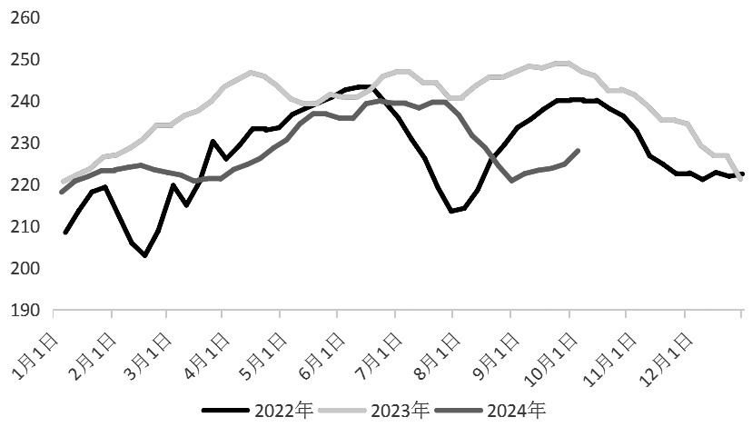 图为钢厂日均铁水产量(单位:万吨) 供应过剩预期延续 根据季节性规律,10月全球铁矿石发运环比回落的概率较大。由于近期发运量处于近3年同期偏高水平,9月全球铁矿石发运量1.31亿吨,同比增加726万吨。根据前期发运量推算,预计10月份45港日均到港量环比增加16.4万吨,同比增加22.9万吨,供应格局较8月份宽松,供应增量将超过需求增量。9月份港口库存小幅去化,但仍维持在1.5亿吨以上较高水平。国庆节前钢厂并未出现明显补库行为,说明钢厂对铁矿石的采购依旧谨慎。随着钢厂补库结束,港口累库压力将再度回升。 估值中性偏高 近期随着铁矿石价格的快速上涨,普氏指数达到105美元/吨附近,处于近3年中位水平,远高于非主流发运成本90美元/吨。铁矿石期货2501合约最经济交割品基差25元/吨,低于往年同期水平,目前铁矿石估值中性偏高。 从中长期看,钢材产量增加将逐渐给产业链带来压力,钢厂以当前利润水平进入冬储的可能性较小,黑色系商品估值将跟随市场情绪回落。近年来螺纹钢表观消费逐年递减,铁矿石发运量居高不下,在供大于求、库存高企背景下,普氏指数长期站稳110美元/吨存在一定压力。操作上,投资者可考虑左侧试空铁矿石,买入I2501-P-750看跌期权。(作者单位:福能期货) (责任编辑:迷你学人) |