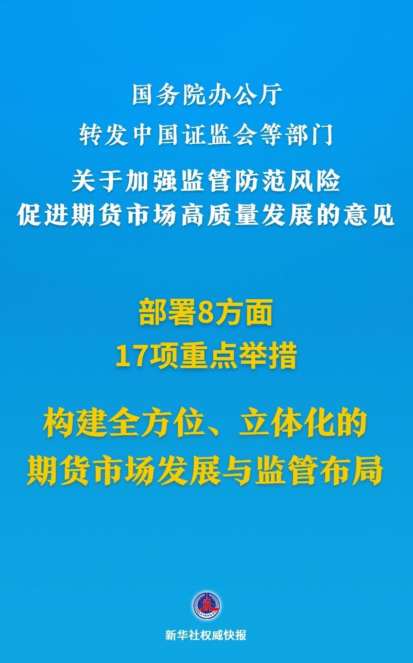 ![]() 日前,国务院办公厅转发中国证监会等部门《关于加强监管防范风险促进期货市场高质量发展的意见》。这一专门针对期货市场的综合性文件,系统全面部署8个方面的政策措施,推动构建全方位、立体化的期货市场发展与监管布局。 相关报道国务院办公厅转发中国证监会等部门《关于加强监管防范风险促进期货市场高质量发展的意见》 日前,国务院办公厅转发中国证监会等部门《关于加强监管防范风险促进期货市场高质量发展的意见》(以下简称《意见》)。 《意见》以习近平新时代中国特色社会主义思想为指导,深入贯彻党的二十大和二十届二中、三中全会精神,完整准确全面贯彻新发展理念,切实加强期货市场监管,有效防范期货市场风险,有力促进期货市场平稳运行和高质量发展,助力维护产业链供应链安全、经济金融安全和社会预期稳定,更好服务实体经济高质量发展,服务构建新发展格局和中国式现代化。 《意见》提出,到2029年,形成中国特色期货监管制度和业务模式总体框架,期货市场监管能力显著增强,品种布局与国民经济结构更加适配,市场深度和定价能力进一步提高,建成一支诚信守法、专业稳健、服务高效的中介机构队伍。到2035年,形成安全、规范、透明、开放、有活力、有韧性的期货市场体系,主要品种吸引全球交易者充分参与,大宗商品价格影响力和市场竞争力显著增强,中介机构综合实力和国际竞争力进一步提高。到本世纪中叶,建成产品齐全、功能完备、服务高效、运行稳健、价格辐射全球的世界一流期货交易所,大幅提升期货市场服务国民经济、配置全球资源能力,为中国式现代化和金融强国建设提供有力支撑。 《意见》部署了8方面17项重点举措。一是严格监管期货交易行为。落实账户实名制、交易者适当性等监管要求。二是严厉打击期货市场违法违规行为。采取有效措施,抑制过度投机。依法严厉打击操纵市场等违法违规行为。三是加强期货公司全过程监管。强化期货公司股权管理和法人治理。规范期货公司及其子公司经营活动。健全期货公司风险出清长效机制。四是强化期货市场风险防范。完善期货保证金封闭运行和安全存管规则。常态化开展期货市场压力测试。提高期货市场结算、交割等的安全保障水平。五是提升商品期货市场服务实体经济质效。完善商品期货市场品种布局。持续改善企业套期保值交易的制度环境。引导企业根据期货价格信号合理安排生产经营。六是稳慎发展金融期货和衍生品市场。发挥股指期货期权稳定市场、活跃市场的双重功能。稳妥有序推动商业银行参与国债期货交易试点。完善资本市场领域衍生品监管规则。七是稳步推进期货市场对外开放。有序拓宽商品期货市场开放范围。研究股指期货、国债期货纳入特定品种对外开放。允许境外期货交易所推出更多挂钩境内期货价格的金融产品。强化开放环境下的监管能力建设。八是深化期货市场监管协作。加强期货监管与股票、债券、基金等监管的数据信息共享。强化跨部门、跨地区监管协同。 (文章来源:新华社) (责任编辑:迷你学人) |