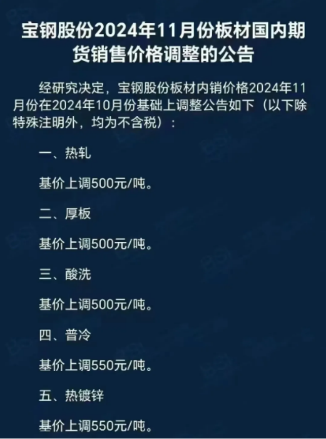 股市如棋局,开户先布局,随时把握投资机遇! 10月12日,财政部发布一系列财政增量政策。 在一揽子货币政策和财政政策加持下,国内大型钢材生产厂家接单不断,宝钢、鞍钢、本钢等国内一批大型钢铁企业公布了11月份产品价格政策调整信息,大幅上涨了出厂价,每吨最高上调600元。 当前,螺纹钢已经成为全国流通领域50种重要生产资料中的领涨品种之一。而上游原料焦炭现货价格已经连续6轮上涨。毫无疑问,财政增量政策将进一步提振市场信心,而在各地房地产政策的加快放松下,钢材市场的销售量或进一步上扬。 国内钢厂大幅上调11月份出厂价 近日,宝钢、鞍钢、本钢等国内一批大型钢铁企业公布了2024年11月份产品价格政策调整信息,均在10月份的基础上大幅上调了出厂价,每吨最高上调600元。 ![]() 对于此次上涨,业内人士认为主要是订单较上月有明显改善,这也变相推动价格回升。Mysteel分析认为,在市场政策刺激的情况下,消费预期有较大改变,而下游端库存偏低,集中释放一轮补库,从而导致了钢厂接单呈现激增。而由于前期经济紧缩结构有所出现,导致先卖订单后买原料的情况较为普遍,此轮价格大幅回升,也迫使这部分需求呈现消费爆发,这也是10—11月份钢厂订单接得较好的主要原因。 随着9月下旬以来国内一揽子货币政策的发布,黑色系在宏观强预期的助力下强势拉涨,螺纹钢最高接近3800元/吨关口,主力合约涨幅一度高达700点。国家统计局发布的最新数据显示,9月下旬与9月中旬相比,螺纹钢价格上涨149.5元/吨,涨幅为4.6%,成为全国流通领域50种重要生产资料中的领涨品种之一。 当前钢材社会库存快速下降。根据中钢协发布2024年9月下旬重点企业钢材库存旬报数据,9月下旬,重点统计钢铁企业钢材库存量1428万吨,环比减少137万吨,下降8.8%。 另外根据Mysteel数据,国庆节后的第一周,国内五大品种钢材总库存量1310.08万吨,环比降29.02万吨。其中,钢厂库存量395.39万吨,环比降8.50万吨;社会库存量914.69万吨,环比降20.52万吨。 原料端价格则在快速上行,国内焦炭现货价格已经连续6轮上涨。10月10日,河北、山西等地区主流焦企对焦炭价格提出第六轮上调,涨幅为干熄焦55元/吨,湿熄焦50元/吨。至此,从9月下旬开始,焦炭累计上涨300元/吨,涨幅逾20%。