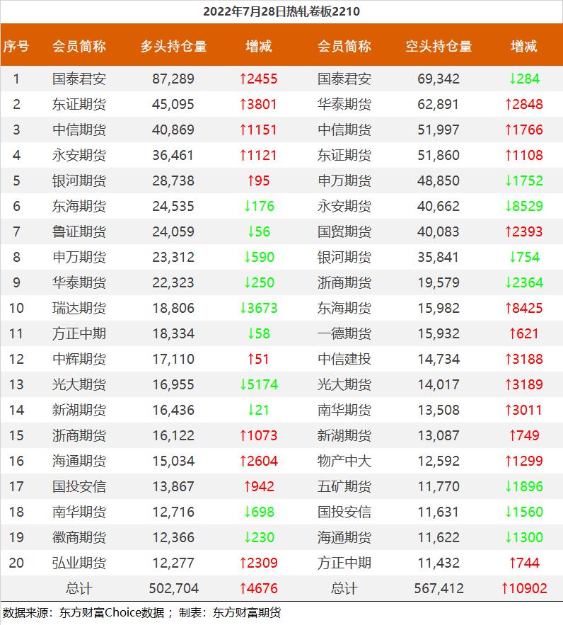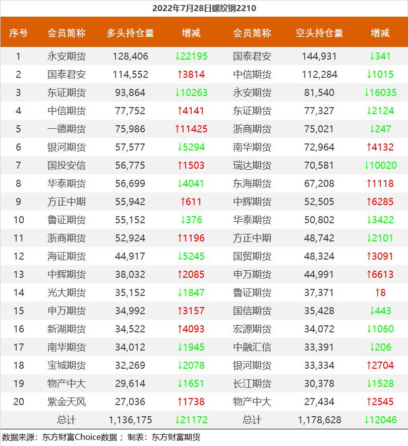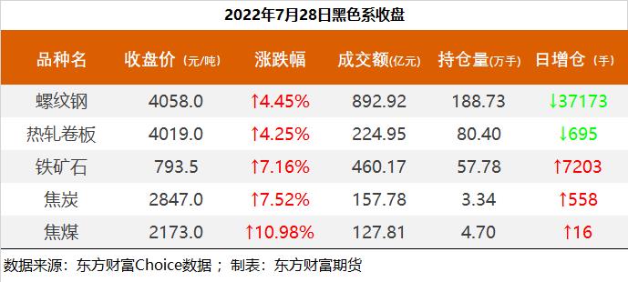 | 截至7月28日收盘,螺纹钢2210收4058元/吨,涨4.45%;热卷2210收4019元/吨,涨4.25%;铁矿石2209收793.5元/吨,涨7.16%;焦炭2209收2847元/吨,涨7.52%;焦煤2209收2173元/吨,涨10.98%。 各品种具体如下: ![]() 各品种持仓情况具体如下: ![]() ![]() ![]() ![]() ![]() |