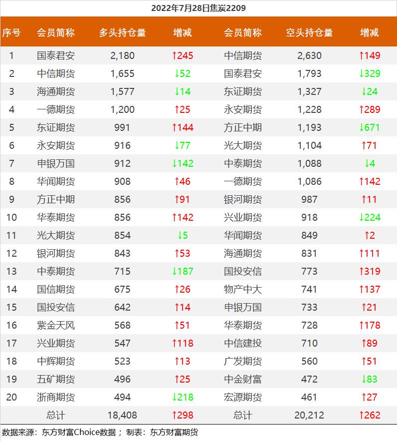 黑色持仓龙虎榜:焦煤涨10.98% 永安期货减持超2.2万手螺纹多单