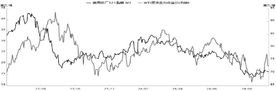 图为美国炼厂利润与油价走势 需求端,关注美国和中国原油需求。美国方面,三季度汽油消费季节性旺季,美国炼厂利润持续回落,汽油需求表现平平,同时市场对美国宏观经济增长的担忧带动油价持续回落。四季度,汽油消费季节性旺季过去后成品油需求将边际减弱,炼厂利润将维持低位。同时,美联储进入降息周期,进一步刺激信贷和消费增长的难度较大,美国就业市场仍然面临较强不确定性,美国原油需求偏弱将对油价形成压力。 中国市场关注三方面:一是政策刺激对经济增长拉动作用的兑现力度。今年以来,中国市场原油需求偏弱,成为压制全球原油需求的重要力量。9月底央行出台了一系列降准降息的货币政策,房地产市场利好频出,市场信心有所恢复,期待后续财政政策能够继续发力,关注预期和现实的兑现情况。二是11月5日美国大选。国庆假日之后特朗普的胜率快速走高,若后期特朗普当选,其贸易和关税政策可能对全球和中国经济带来压力。三是替代能源对汽柴油需求的影响。国内新能源汽车销量渗透率持续位于50%以上后,新能源汽车对汽油需求的替代将持续。同时LNG重卡对柴油需求的替代也在持续。 整体来看,短期油价不确定性较强,主要来自中东地缘政治。中期OPEC+增产和原油需求偏弱对油价有压力。预期原油波动率将进一步放大,投资者需注意风险。 (责任编辑:迷你学人) |