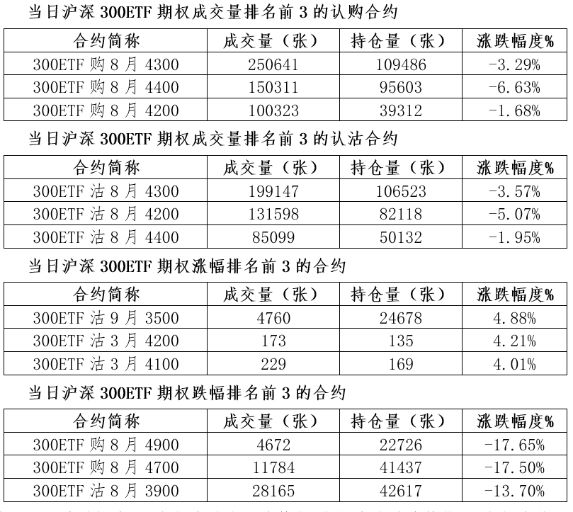 沪深300ETF现货报收于4.279元,上涨0.07%,沪深300ETF期权总成交面额642.010亿元,期现成交比为0.24,权利金成交金额11.670亿元;合约总成交1493358张,较上一交易日减少11.36%,总持仓1550823张,较上一交易日减少24.24%。认沽认购比为0.88(上一交易日认沽认购比1.10)。