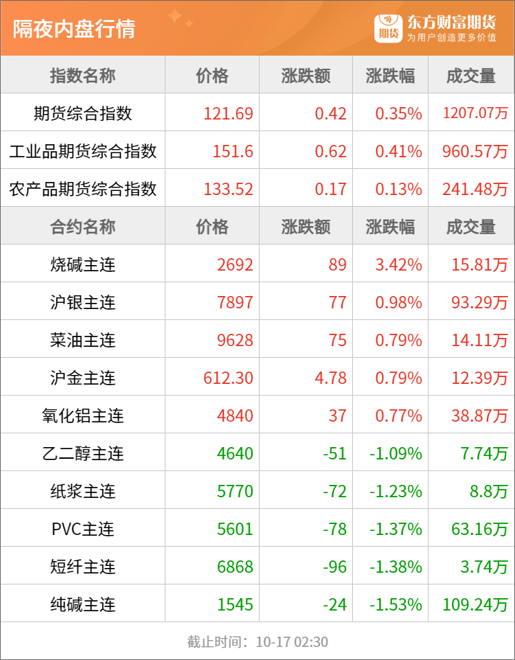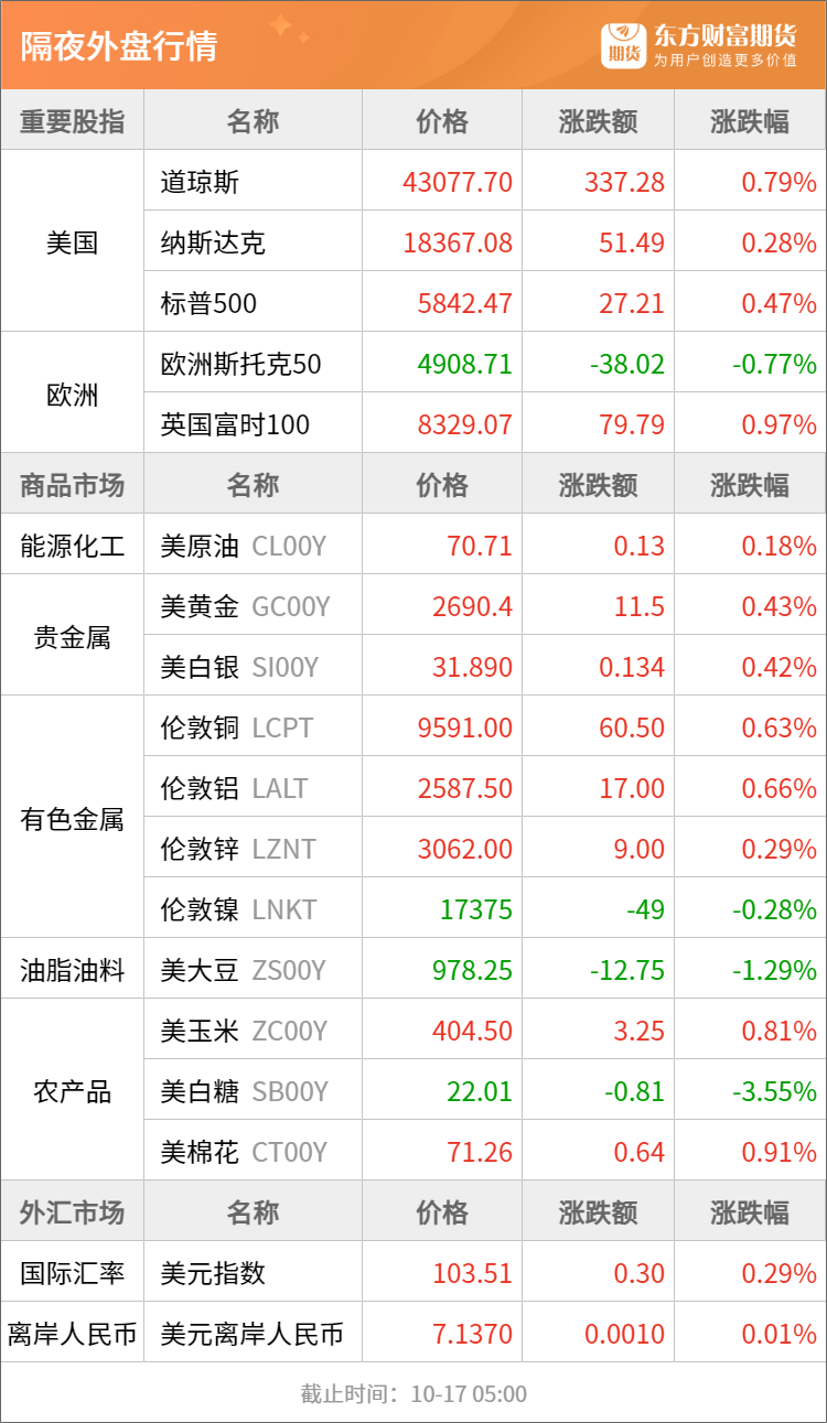 东方财富期货早餐 10月17日 周四