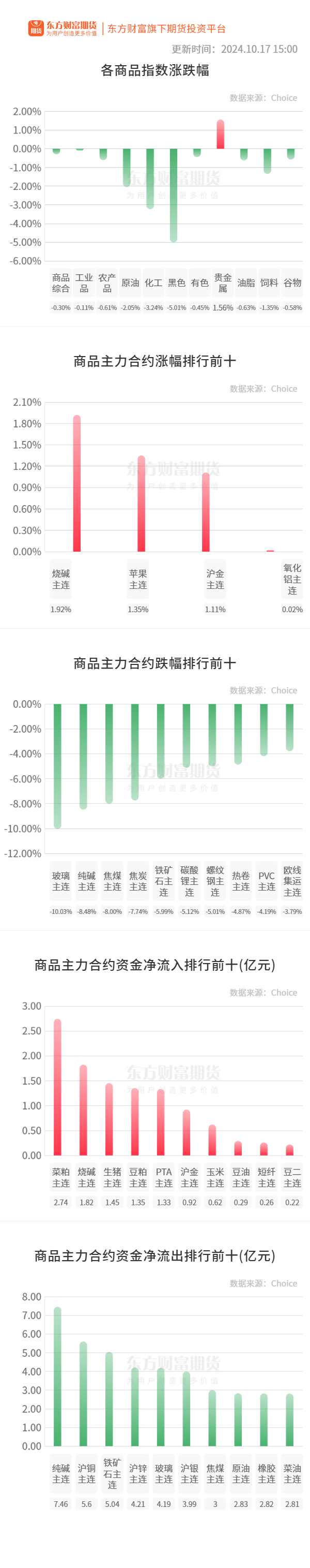 行情纵览![]() 宏观产经证券时报网:住房城乡建设部部长倪虹10月17日在国新办发布会上表示,年底前将“白名单”项目信贷规模增加到4万亿元。要将所有合格项目都争取纳入“白名单”,应干尽干。 证券时报网:住建部部长倪虹10月17日在国新办新闻发布会上表示,将通过货币化安置房方式新增实施100万套城中村改造、危旧房改造。调查显示,仅在35个大中城市,需要改造的城中村就有170万套,其他城市也有改造需求;全国需要改造的危旧房有50万套。这次提出的新增实施100万套主要针对条件成熟、通过加大政策力度可以提前干的项目,主要采取货币安置的方式,将更有利于群众和自己意愿选择合适方式。 品种资讯黑色系期货 螺纹钢:据Mysteel,截至10月17日当周,螺纹钢产量连续第八周增加,社库连续第二周下降,厂库连续第三周增加,表需连续第二周增加。①螺纹产量244.07万吨,较上周增加7.81万吨,增幅3.31%;②螺纹厂库144.07万吨,较上周增加5.6万吨,增幅4.04%;③螺纹社库283.01万吨,较上周减少19.37万吨,降幅6.41%;④螺纹表需257.84万吨,较上周增加9.34万吨,增幅3.76%。(Mysteel) 铁矿石:截至10月17日,新口径114家钢厂进口烧结粉总库存2533.48万吨,环比上期降11.73万吨;进口烧结粉总日耗116.29万吨,增0.27万吨;剔除长期停产样本后不含税铁水成本2605元/吨,增23元/吨。(Mysteel) 农产品期货 菜油:中储粮网发布10月17日油脂公司菜籽油竞价采购结果,成交率78%。(中储粮网) 玉米:中储粮网发布10月17日储运公司玉米竞价销售结果,成交率17%。(中储粮网) 有色/贵金属期货 沪铜:秘鲁当局数据显示,该国8月份铜产量同比增长10.7%,达到24.66万吨。(新华财经) 沪锌:截至本周四(10月17日),SMM七地锌锭库存总量为12.18万吨,较10月10日增加0.87万吨,较10月14日增加0.27万吨,国内库存录增。(SMM) 碳酸锂:上海钢联发布数据显示,今日电池级碳酸锂价格较上日下跌1000元,均价报7.30万元/吨。(新华财经) 氧化铝:据上海有色网(SMM)调研,自10月17日起山东某大型氧化铝厂调整32%的离子膜液碱收货价格,在815元/吨的基础上上调30元/吨;即两票制出厂执行845元/吨(折百价约为2641元/吨)。(SMM) 不锈钢:2024年10月17日,全国主流市场不锈钢89仓库口径社会总库存101.95万吨,周环比上升0.89%。(Mysteel) 能化期货 尿素:山西地区启动重污染天气橙色预警通知,当地煤化工企业自10月10日起将限产30%,尿素周度开工率环比下滑。但企业库存升至新高,增加至111.65万吨,前一周为94.41万吨,开工率下降至84.55%,前一周为86.30%。近期尿素价格不断下跌,刚需推进不及预期,虽然主产销区部分企业可以产销平衡,但部分外发为主的尿素企业库存压力上行。其中内蒙古库存累库幅度较大,整体拉高库存累库幅度。(隆众资讯) 玻璃:截止到10月17日,全国浮法玻璃样本企业总库存5783.5万重箱,环比下降100.9万重箱或1.71%,创今年3月份以来新低,同比增加43.5%,折库存天数26.4天,较上期下降0.4天。(隆众资讯) 烧碱:截至2024年10月17日,烧碱样本企业厂库库存35.43万吨,环比上调6.46%,同比下滑12.9%。(隆众资讯) 纯碱:截至10月17日,国内纯碱厂家总库存160.13万吨,环比周增7.27万吨,涨幅4.76%,较周一(10月14日)增加1.24万吨,涨幅0.78%。(隆众资讯) 乙二醇:截至10月17日,华东主港地区乙二醇港口库存总量55.1万吨,较上一统计周期增加3.58万吨。本周港口提货迟缓,卸货相对恢复下库存止降回升。(隆众资讯) 纸浆:截至10月17日当周,中国纸浆主流港口样本库存量为165万吨,较上期下降7.9万吨,环比下降4.6%。(隆众资讯) 晚间关注无 (文章来源:东方财富研究中心) (责任编辑:迷你学人) |