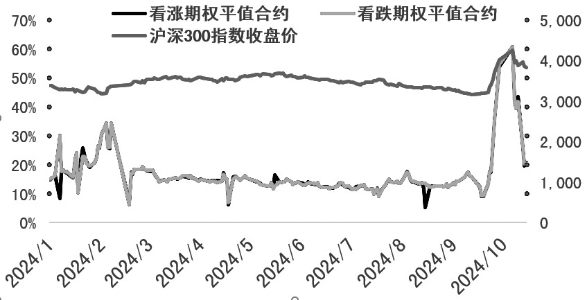 图为沪深300股指期权、平值期权隐含波动率随时间的变化 在期货相对现货呈现高升水时会出现期现套利机会,即进行买入现货同时卖出期货的操作,随着期货合约逐步到期,基差逐步回归,投资者在这个过程中可以获得比较确定的基差回归的收益。 在9月24日之前,市场成交低迷,沪深300股指期权的隐含波动率一直维持在15%以下,处于历史较低水平。利好政策出台后,股指短期连续大幅拉升,市场波动急剧增大,沪深300股指期权隐含波动率也随之快速上升至10月8日的60%,在定价上期权价格明显变贵,期权买方成本增加。随着后续行情退却,期权隐含波动率也逐步回落至20%左右。 随着当前利好政策不断出台,股市整体预计震荡偏多为主,在政策驱动预期向好和基本面逐步被验证的双重驱动下,将实现长牛新局面。(作者单位:申银万国期货) (责任编辑:迷你学人) |
