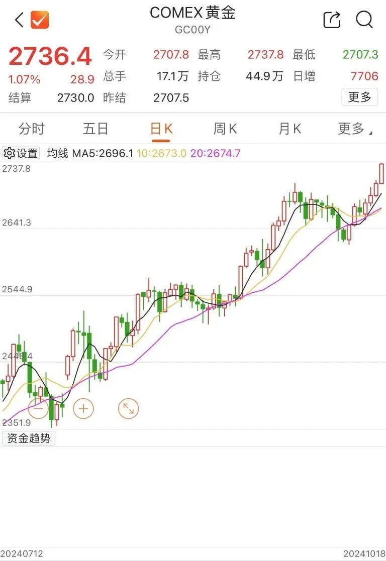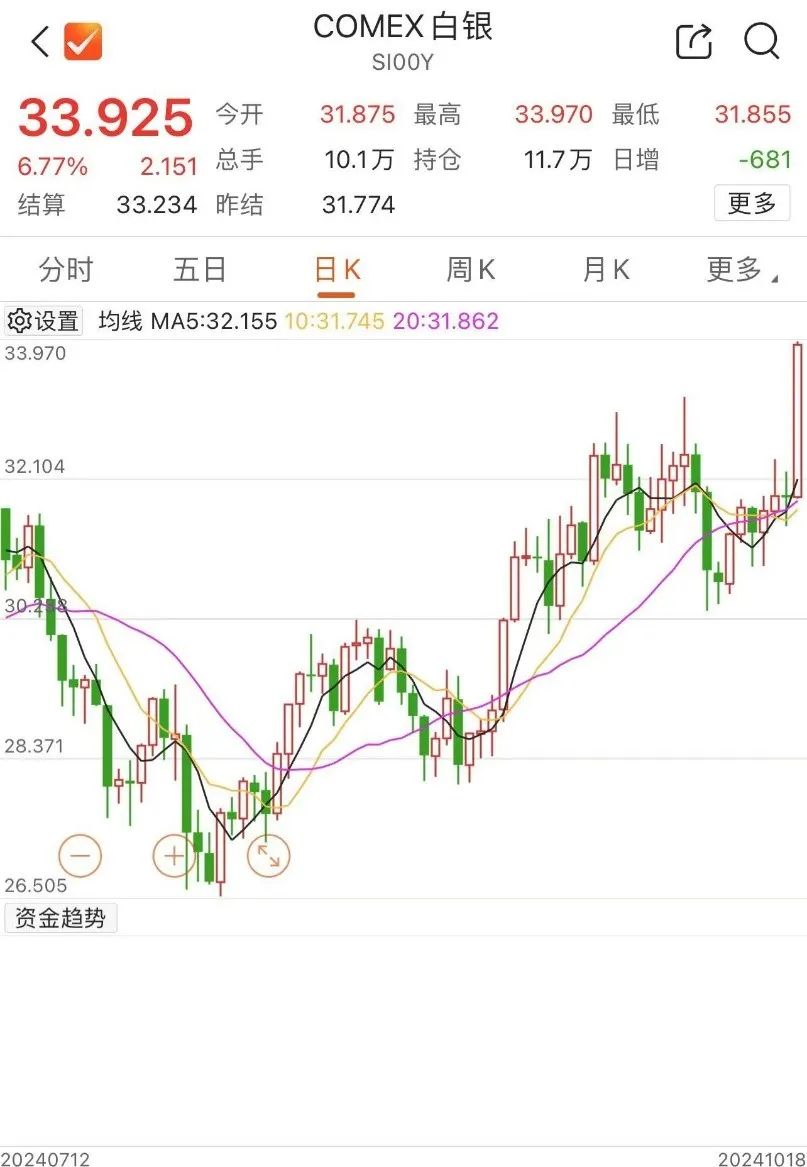 金银期现价格联袂飙涨 周五美股交易时段,贵金属板块集体爆发。其中,现货黄金(伦敦金现)突破2700美元/盎司大关,盘中最高触及2722.41美元/盎司,续创历史新高。COMEX黄金期价单日涨幅超过1%,最高上破2730美元/盎司。 ![]() 白银涨势更为明显。现货白银(伦敦银现)涨超6%,2012年12月以来首次突破33美元关口,最高涨至33.744美元/盎司,收于33.696美元/盎司高位。COMEX白银期货涨逾6.7%,报33.925美元/盎司,盘中一度逼近33.40美元/盎司。 ![]() 展望后市,WisdomTree大宗商品策略师Nitesh Shah表示:“除了中东的担忧之外,美国大选也即将到来,这看起来是一场竞争非常激烈的选举。这会产生大量的不确定性,而黄金往往是不确定时期的首选。” 中信期货认为,今年贵金属上冲动力来自于流动性及预期转宽过程,风险端提供安全边际。此时,决定性时间来自于11月议息会议、非农和通胀数据,以及大选结果。建议投资者在11月议息会议前,分步骤,而非单次逐渐建仓,或将之前止盈部分仓位重新考虑再低位补充。 国际油价盘中跌至月内最低 当地时间周五,国际油价盘中突然大幅下挫,跌幅一度扩大至超过2.5%,WTI原油一度跌至68.17美元/桶,布伦特原油一度跌至72.50美元/桶。截至收盘,WTI原油跌1.78%,报68.64美元/桶;布伦特原油跌1.72%,报73.17美元/桶。 ![]() 本周,国际油价大幅回撤,周内出现连续两次大幅下跌,WTI原油最低跌破70美元/桶重要关口,为月内最低。 基金公司蜂鸟资本(Hummingbird Capital)执行合伙人马特·波利亚克(Matt Polyak)表示,石油市场关注的主要焦点将是伊朗与以色列之间的关系、美国大选及对乌克兰危机影响、中东风险溢价、供应增长和需求前景尤其是中国的需求。 波利亚克称,人们将会关注近期中国的刺激措施在近期对推动需求改善有什么作用。相信在明年一季度之前,中国的需求不会反弹,这将会让原油需求走低。“话虽如此,中国新的刺激措施推出后,中国需求数据带来的利空可能已经结束,近期可能会出现需求增长。” 中概股大涨 隔夜,美股三大指数小幅收涨,标普、道指均续创历史收盘新高。截至收盘,道指涨36.86点,涨幅0.09%,报43275.91点;纳斯达克指数涨115.94点,涨幅0.63%,报18489.55点;标普500指数涨23.20点,涨幅0.40%,报5864.67点。 ![]() 大型科技股多数上涨,奈飞涨超11%,创历史新高;英特尔、苹果涨超1%,微软、谷歌、亚马逊、英伟达小幅上涨;特斯拉、Meta小幅下跌。 ![]() 消息面上,美国银行上调英伟达目标价,称还有近40%的上行空间。奈飞三季度盈利超预期增近45%,订阅用户意外多增逾50万,广告会员数较上季度增长35%,摩根士丹利、摩根大通均预计还能再涨超20%。 热门中概股普涨,纳斯达克中国金龙指数涨3.03%,理想汽车涨超6%,富途控股、哔哩哔哩、微博、网易涨超3%,京东、小鹏汽车、爱奇艺、百度、阿里巴巴、满帮、腾讯音乐涨超2%,蔚来涨超1%,拼多多小幅上涨。 (文章来源:上海证券报) (责任编辑:迷你学人) |