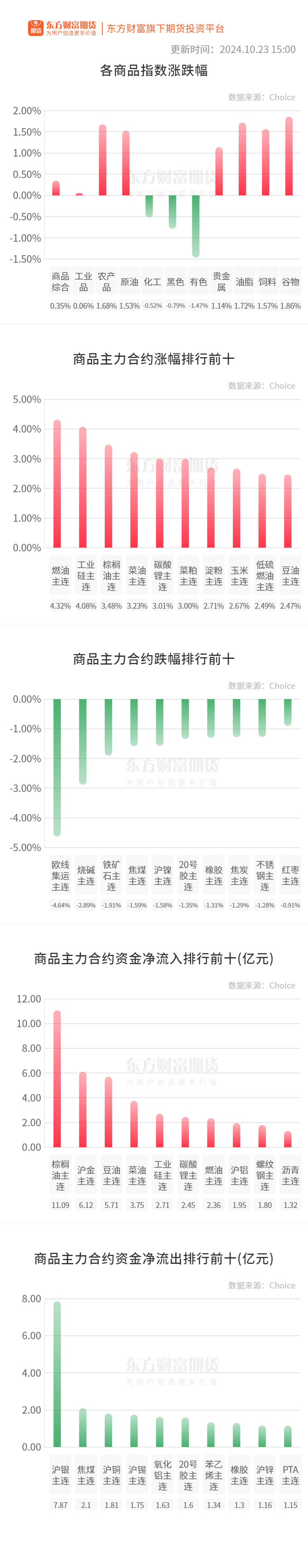 期市收评 | 商品期货多数上涨 油脂板块涨幅居前