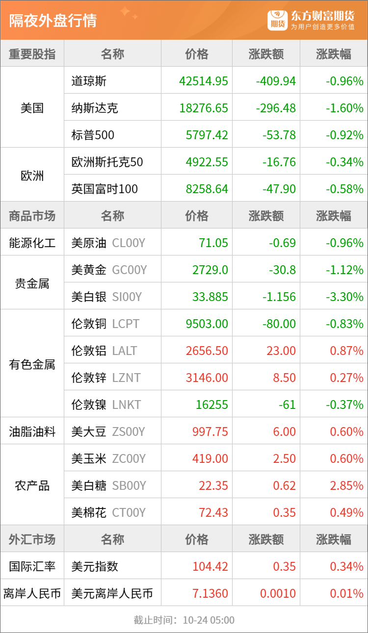 东方财富期货早餐 10月24日 周四