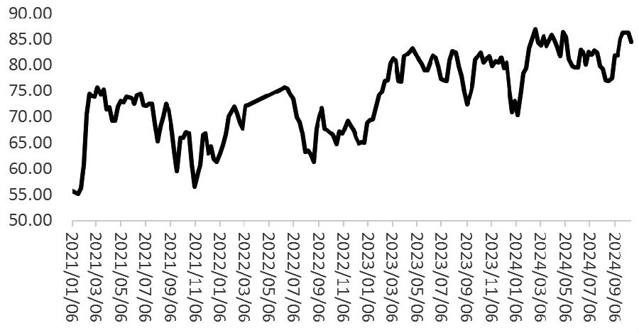 图为尿素行业开工率(单位:%) 目前尿素供需没有明显改善。一方面,开工率处于高位,库存压力较大;另一方面,农业需求、工业需求未见明显改善。 开工率处于高位 由于国内尿素价格处于低位,生产企业经营状况较差。目前尿素行业综合生产利润60元/吨,去年同期为570元/吨。成本最高的固定床工艺亏损410元/吨,水煤浆工艺盈利60元/吨,天然气工艺盈利90元/吨。 目前尿素企业开工负荷处于高位,日产量在18万吨左右,市场供应充足。截至10月16日,国内尿素生产企业开工率84.55%,较去年同期上升4.1个百分点,较前一周小幅下降,仍处于历史高位。从企业检修计划看,近期尿素企业开工率不会有明显变化,但年底仍存在下降预期。一方面,冬季工业用气受到限制,气头尿素开工受到影响;另一方面,目前国内尿素企业生产积极性不高,特别是固定床工艺,若亏损持续,部分企业可能限产。 由于出口受限,今年国内尿素港口库存低于去年同期。截至11月17日,港口库存为22万吨,较去年同期下降9.7万吨,同比下降30.6%。其中,大颗粒尿素港口库存为18万吨,较去年同期增加5.3万吨,同比增长41.73%;小颗粒尿素港口库存为4万吨,较去年同期下降15万吨,同比下降78.95%。因为出口受限,尿素库存向上转移至企业库存、向下转移至社会库存和贸易商库存,目前整体供应压力仍较大。 需求没有亮点 秋季用肥的刚需缺口逐渐减少,冬季农业仅有部分底肥需求,整体需求进入淡季。同时,复合肥需求也逐渐进入淡季,虽然利润较去年同期略有上升,但开工率开始下降,对原料尿素的采购力度下降。 工业需求方面也没有亮点。今年三聚氰胺的生产利润好于去年同期,但受房地产行业复苏缓慢影响,终端订单有限,三聚氰胺开工负荷下降。截至10月17日,国内三聚氰胺开工率仅52.15%,较去年同期下降13.51个百分点。 关注出口政策变化 今年以来,出于保障国内供应的目的,政府对尿素出口采取了较为严格的限制措施,使得今年国内尿素出口出现断崖式下降。海关总署公布的数据显示,今年1—9月国内累计出口尿素25万吨,较去年同期下降257.47万吨。 目前,国内尿素供大于求问题凸显,价格低位运行,行业利润微薄,有较强的加大出口、缓解供应压力需求。另外,当前尿素现货价格在1800元/吨,海外尿素价格约2200元/吨,出口利润较为丰厚,放开出口限制有利于平抑内外价差。近期,有消息称国内将放松尿素出口限制,但尚未见到官方表态。若出口限制放开,出口需求增加,内外价差回归有望带动尿素价格反弹。 综上,目前尿素供需格局没有明显改善,企业去库存压力较大,生产利润偏低但未见明显的降负迹象。且农业需求和工业需求均进入淡季,尿素弱势格局难以改变。投资者要重点关注出口政策的变化。(作者单位:弘毅物产) (责任编辑:迷你学人) |