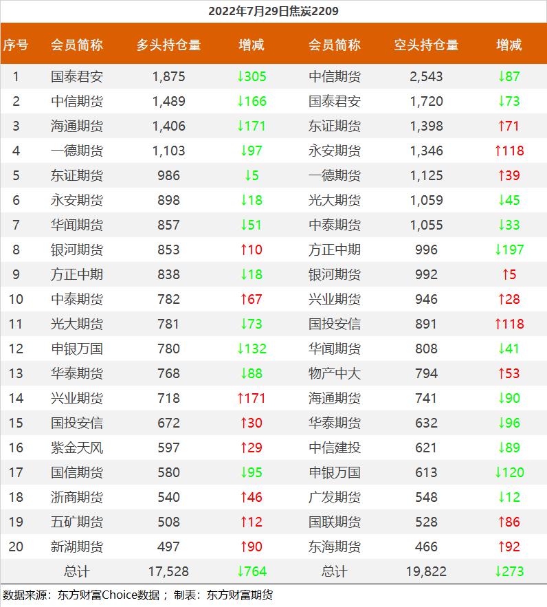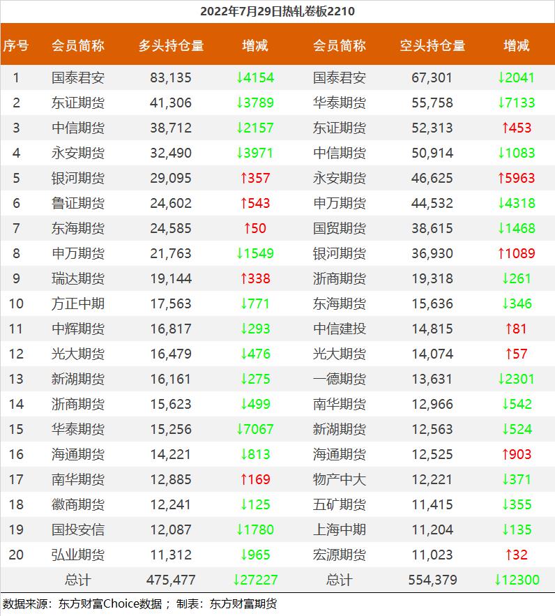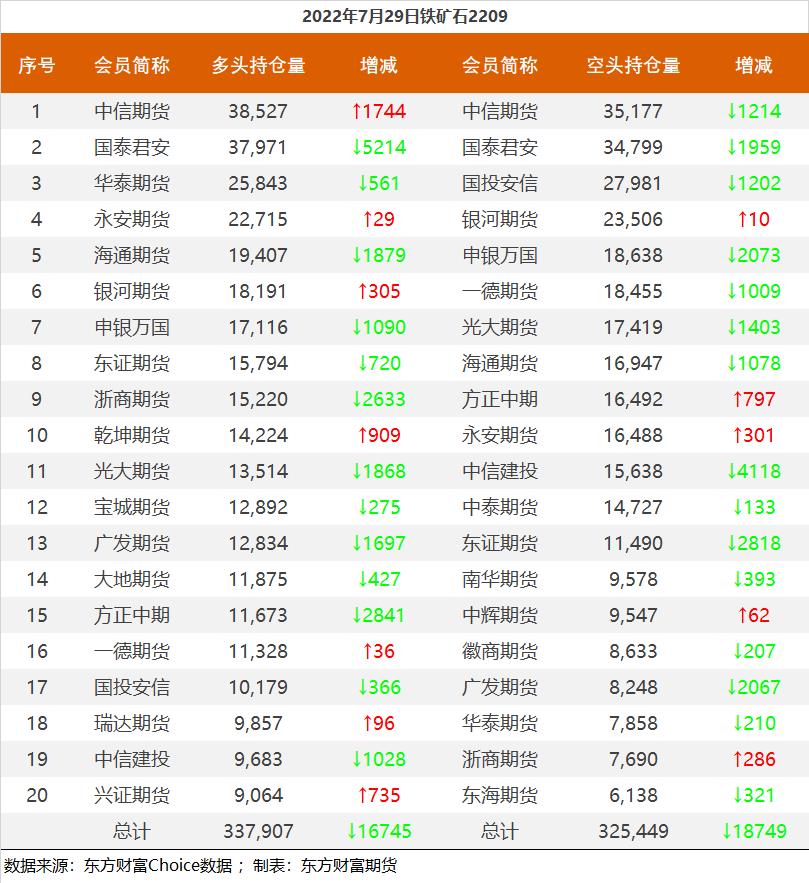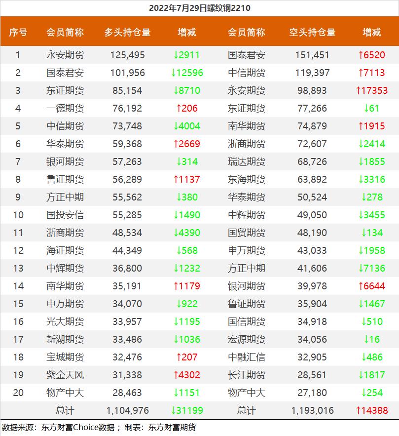 黑色持仓龙虎榜:铁矿石涨1.82% 国泰君安减持超1.2万手螺纹钢多单 东方财富网 07月29日 截至7月29日收盘,螺纹钢2210收3996元/吨,涨0.63%;热卷2210收3969元/吨,涨0.71%;铁矿石2209收782元/吨,涨1.82%。 各品种具体如下: 各品种持仓情况具体如下: (责任编辑:admin)