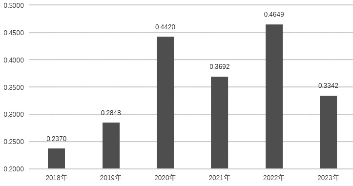 图为原油期货历史波动率年度统计 以close _close volatility为例,从统计描述数据看,原油期货波动加大。原油期货在2022年波动率均值为0.4648,创上市以来新高。并且对2021年6月21日后期跟前期数据进行描述性统计分析,原油期权推出以后,截至2023年2月28日,历史波动率均值为0.4211,大于期权推出之前的均值0.3426,说明原油期权推出以后,原油期货波动增大,历史波动率水平提高8个百分点。 波动率存在脉冲性 从上图原油期货指数30日历史波动率变动情况来看,其具有较为突出的脉冲性。当波动率脉冲式触顶之后又会脉冲式的反向变动,因此短期内波动率将处于极端的趋势变动中。